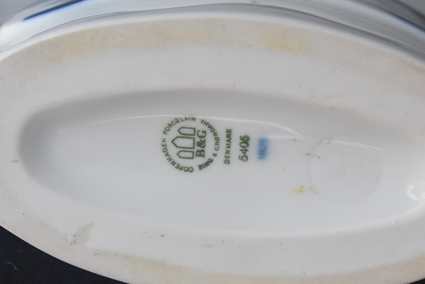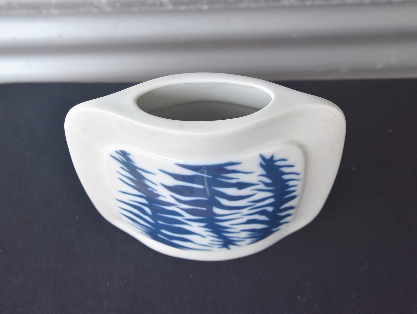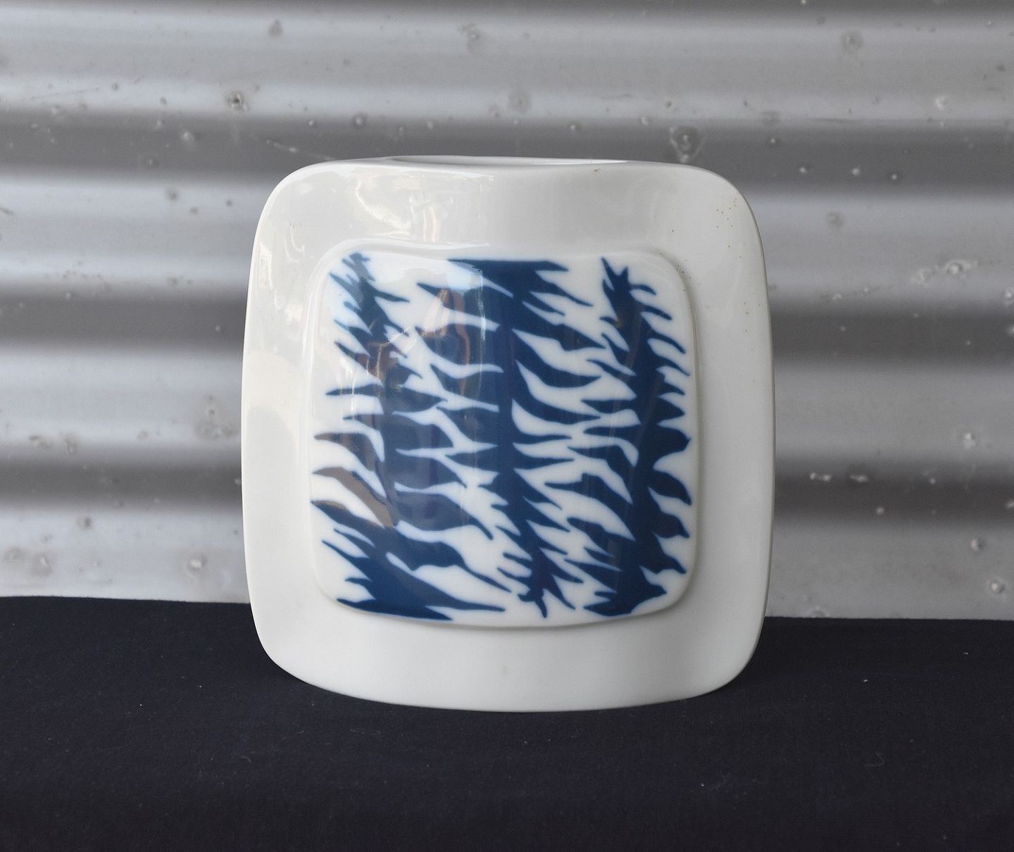 Bing & Grøndahl B&G 5405 Oval moderne vase med blå dekoration. Design Else Kamp Jensen