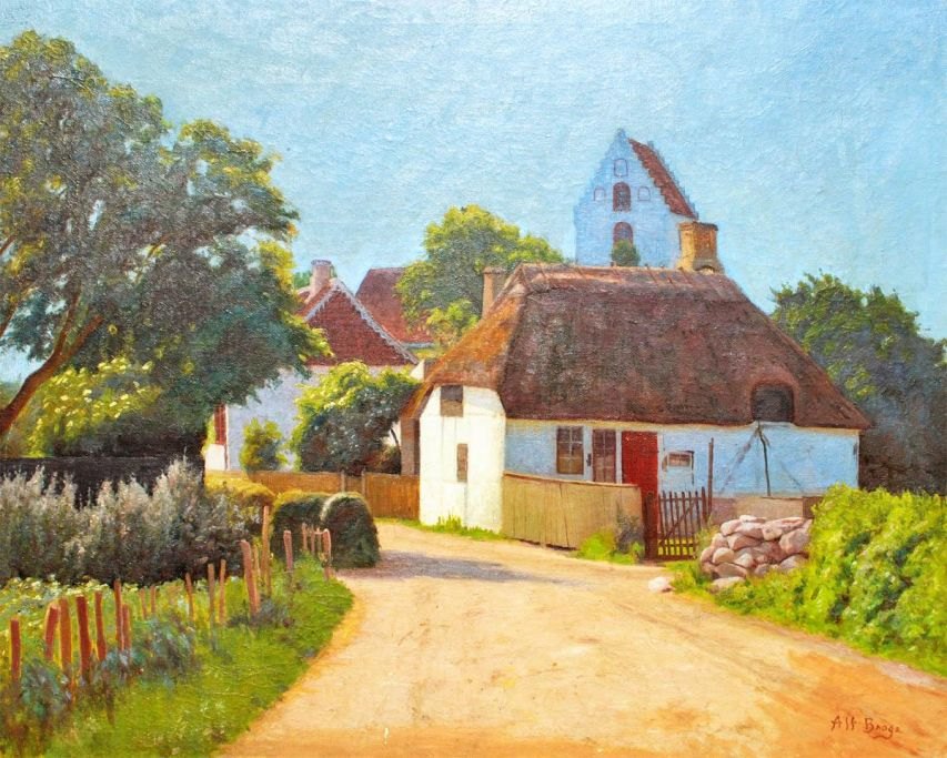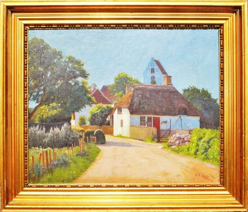 Broge, Alfred (1870 - 1955) Danmark. Motiv fra Lindelse, Langeland.