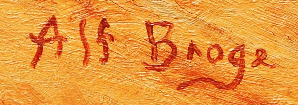 Broge, Alfred (1870 - 1955) Danmark: Motiv fra Lindelse, Langeland. Olie på lærred. Sign.: Alf. Broge. 60 x 74 cm.