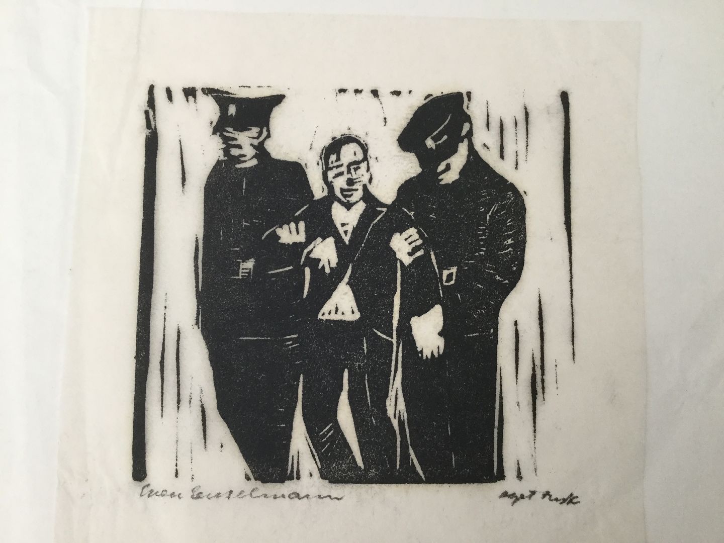 Har et træsnit mage til (se foto 2) - dette er på almindelig brunlig papir og betegnet Unica - mål 11x11
