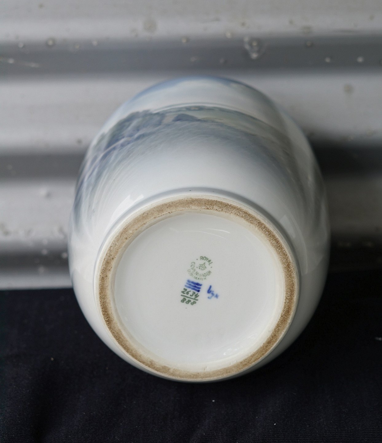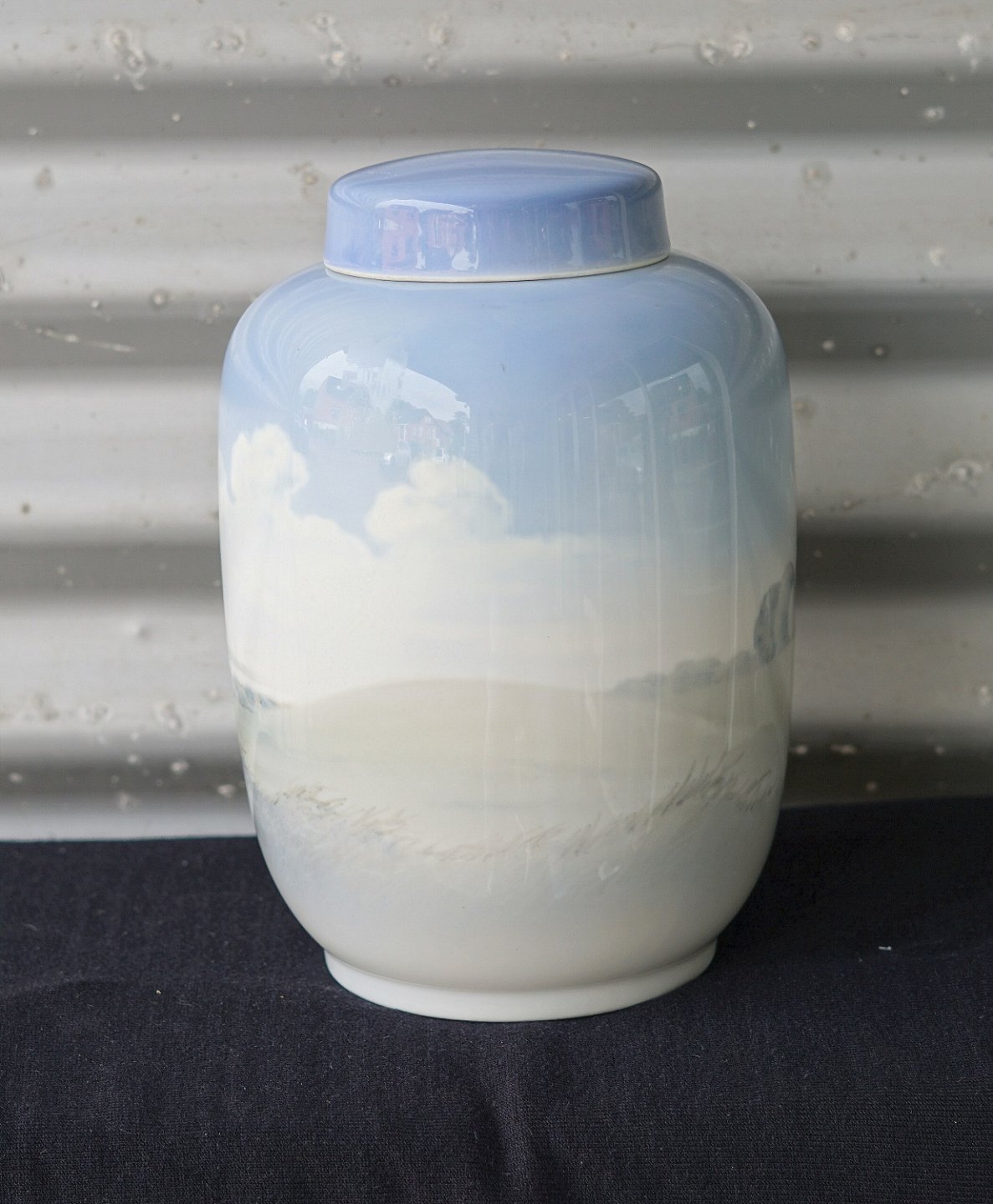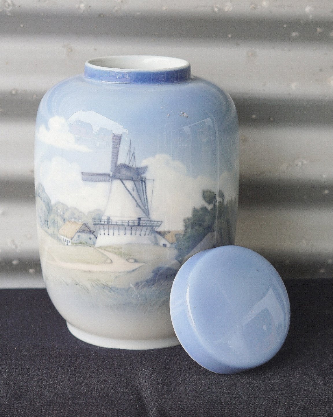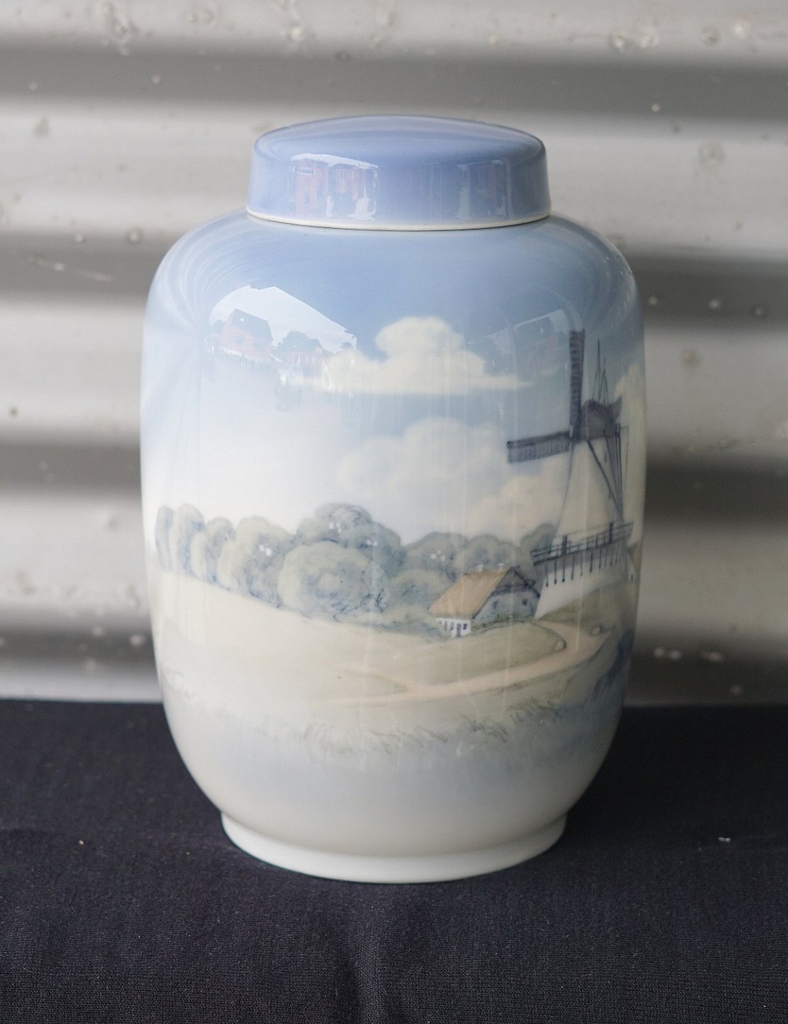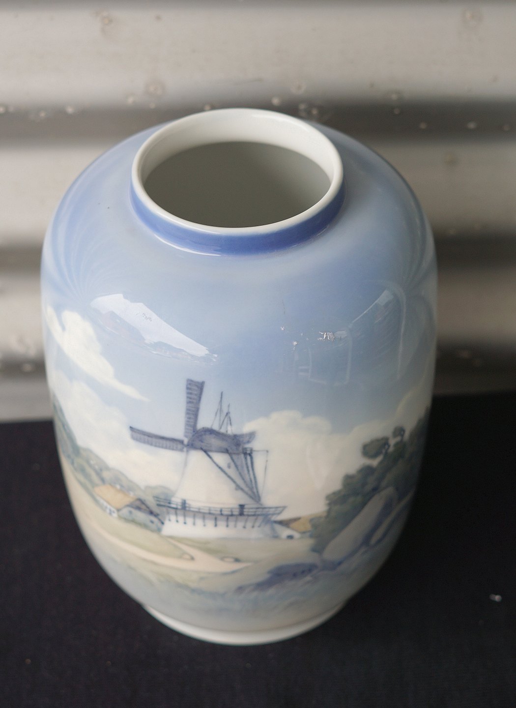 Royal Copenhagen, Lågvase/urne (2634/888) RC/Kgl. med møllemotiv