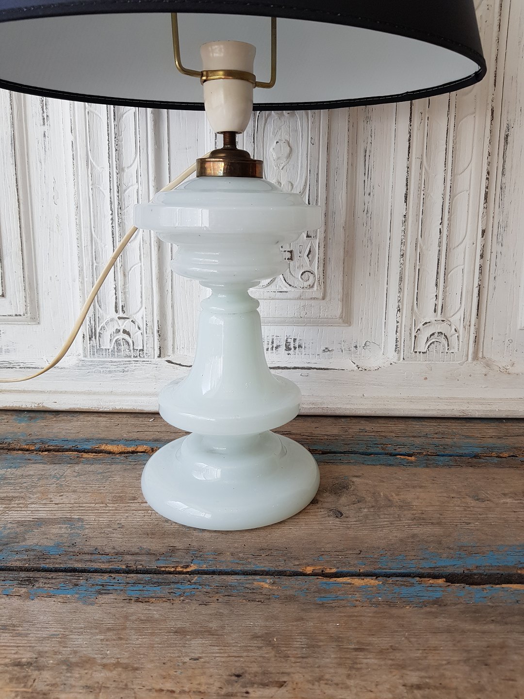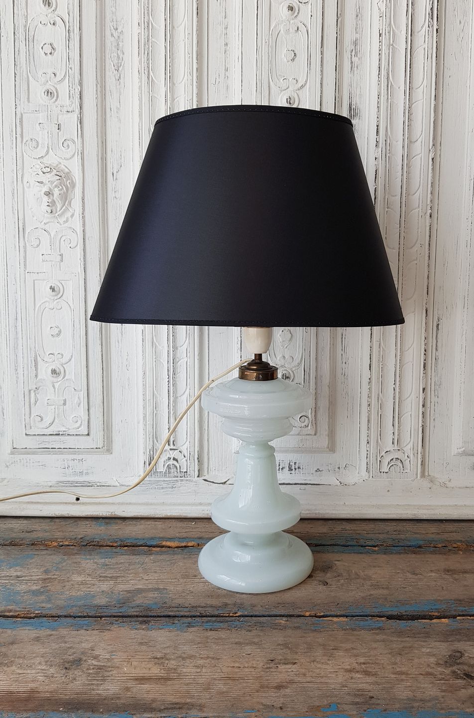 Hvid opaline olielampe omlavet til el.