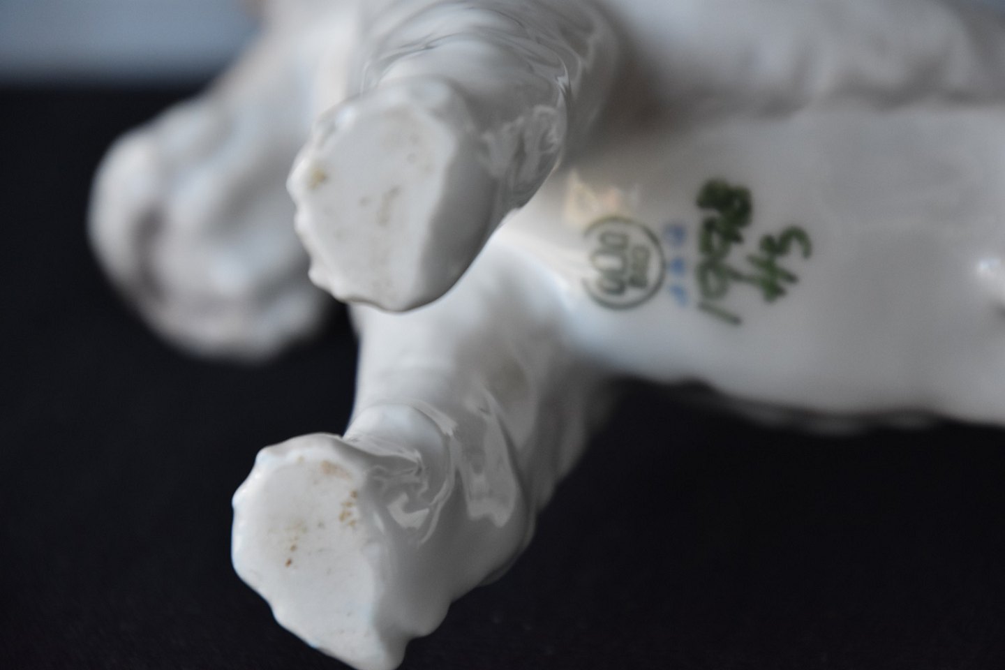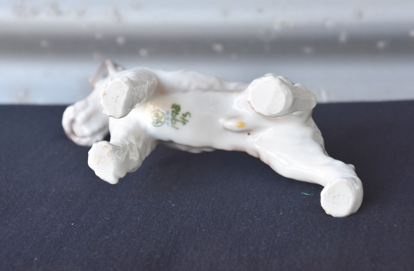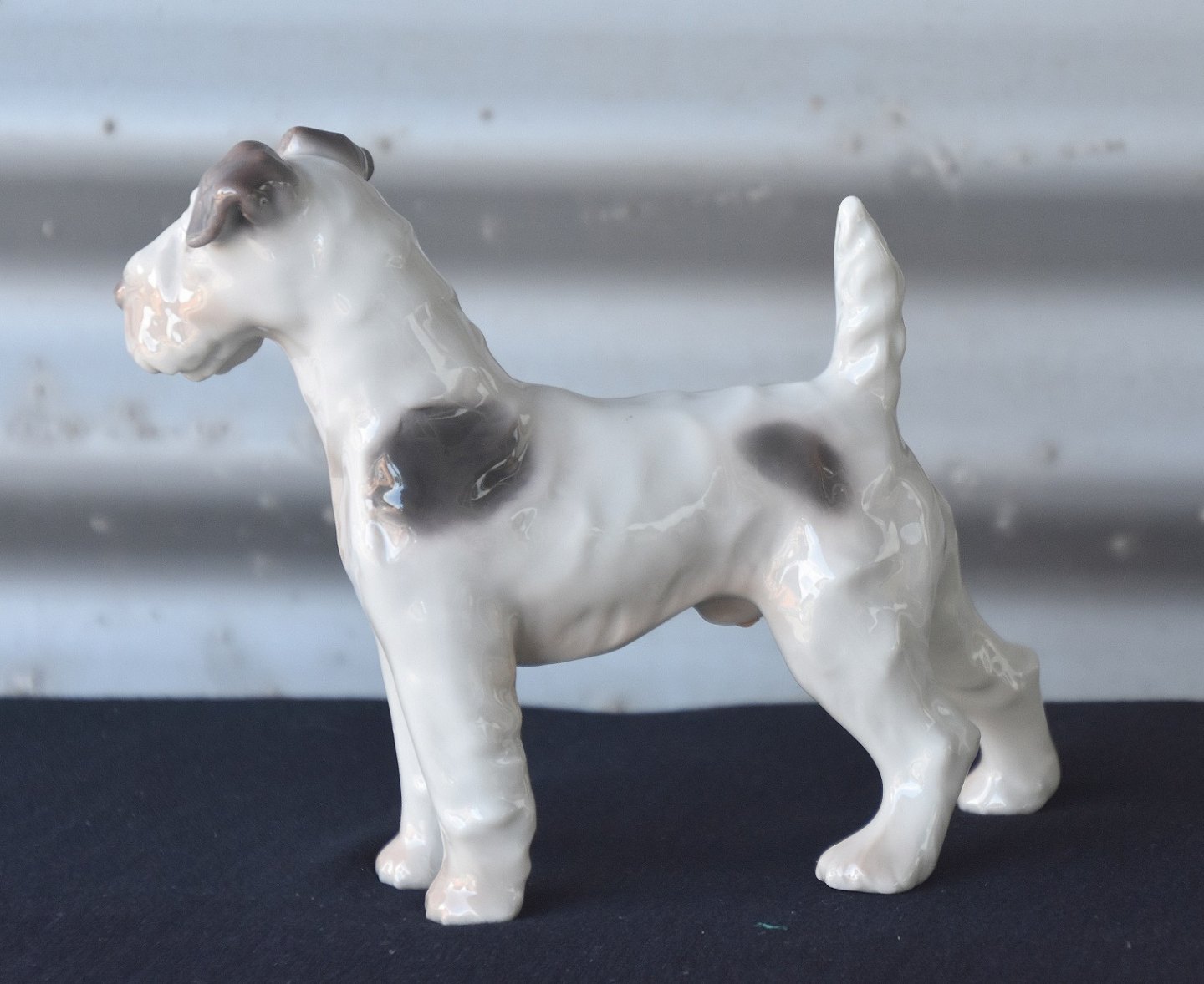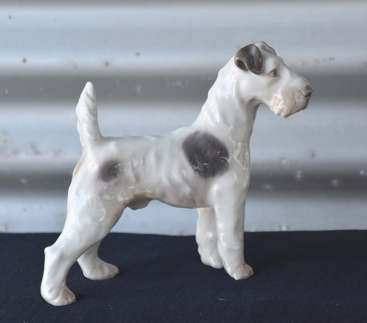 Figur i porcelæn med motiv af ruhåret foxterrier. Nr. 1998
