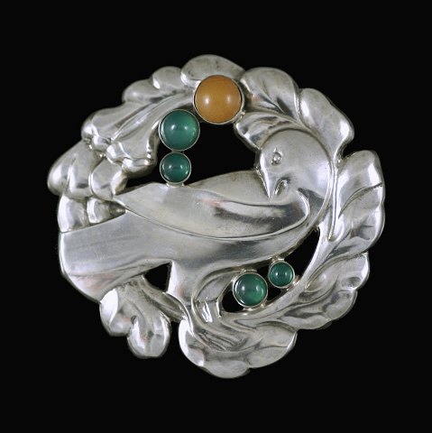 Georg Jensen Broche i sølv med rav og agat#70. 1904-08 stempler.