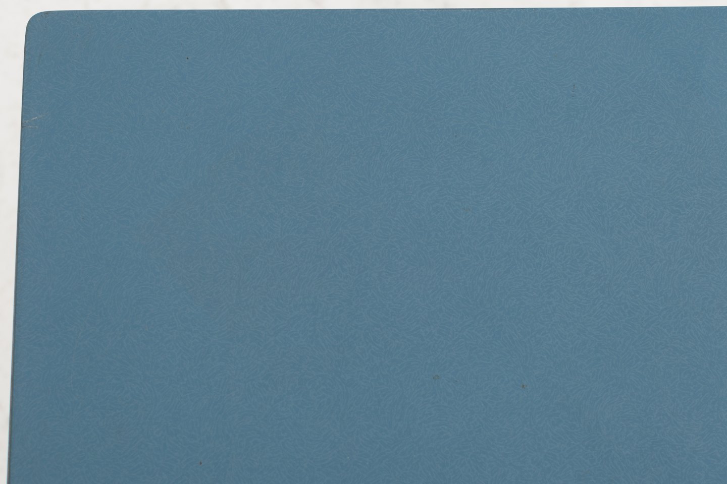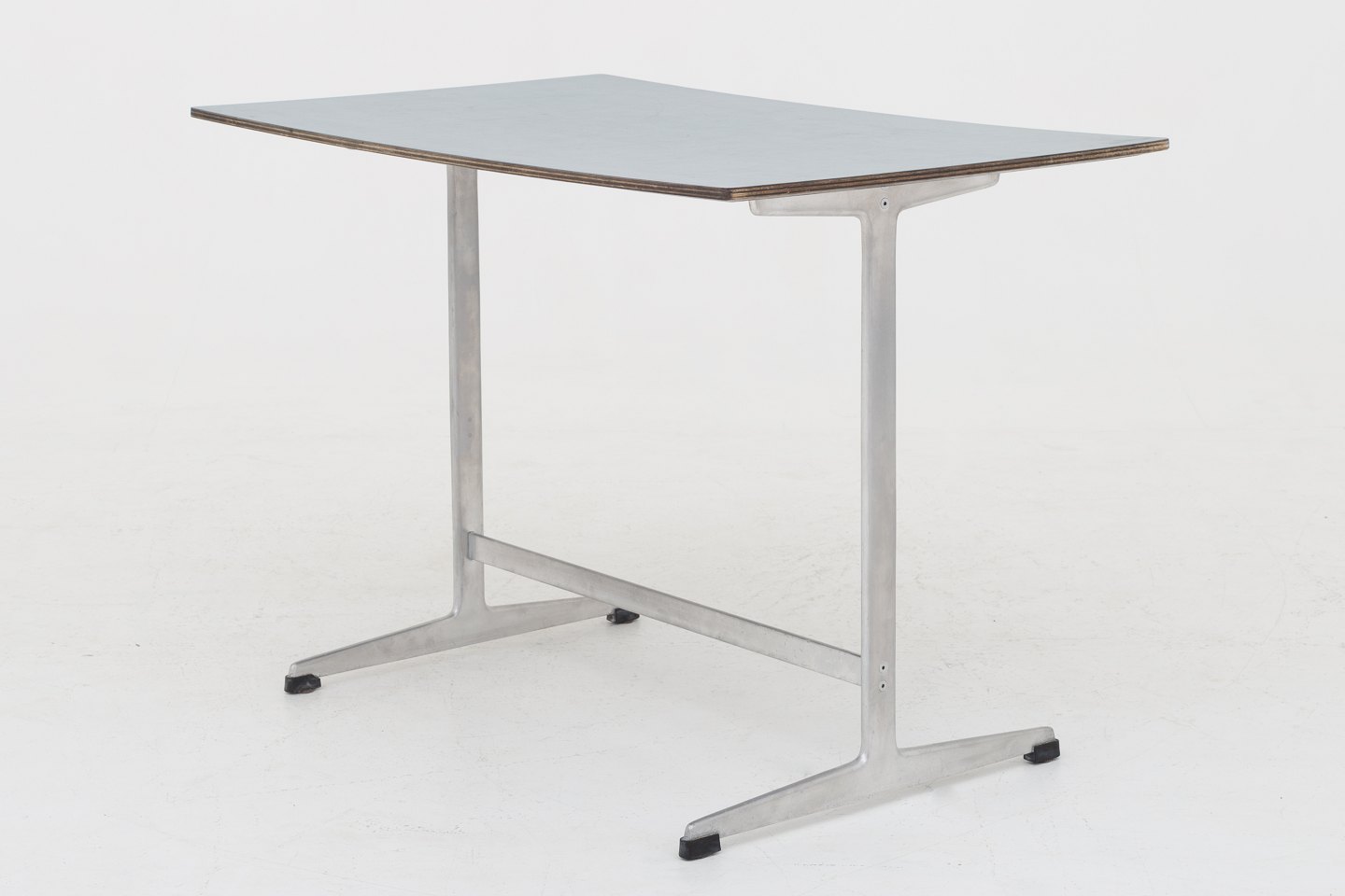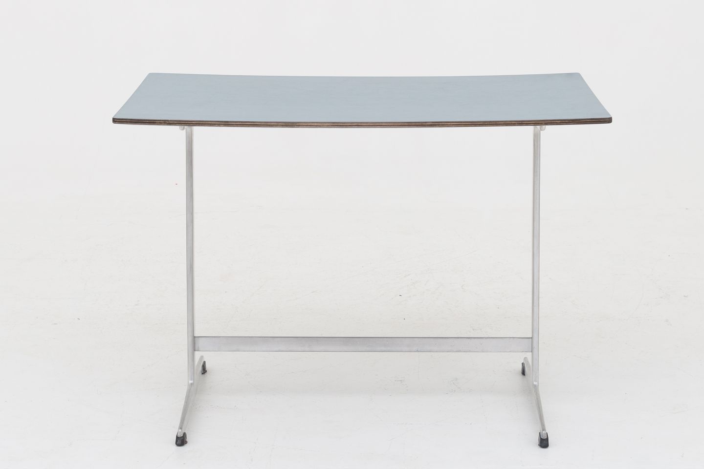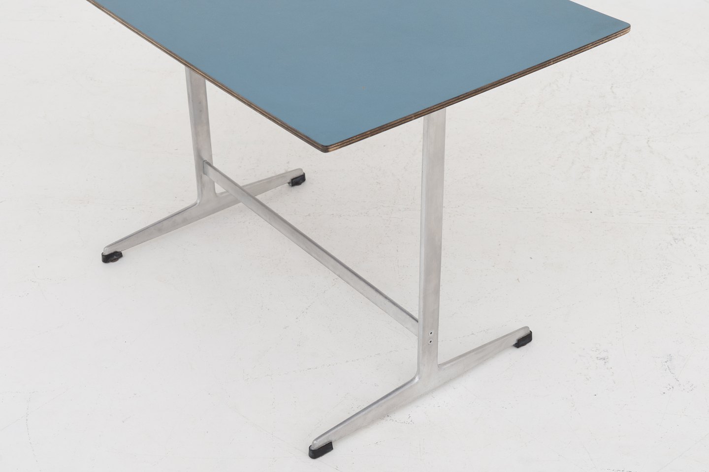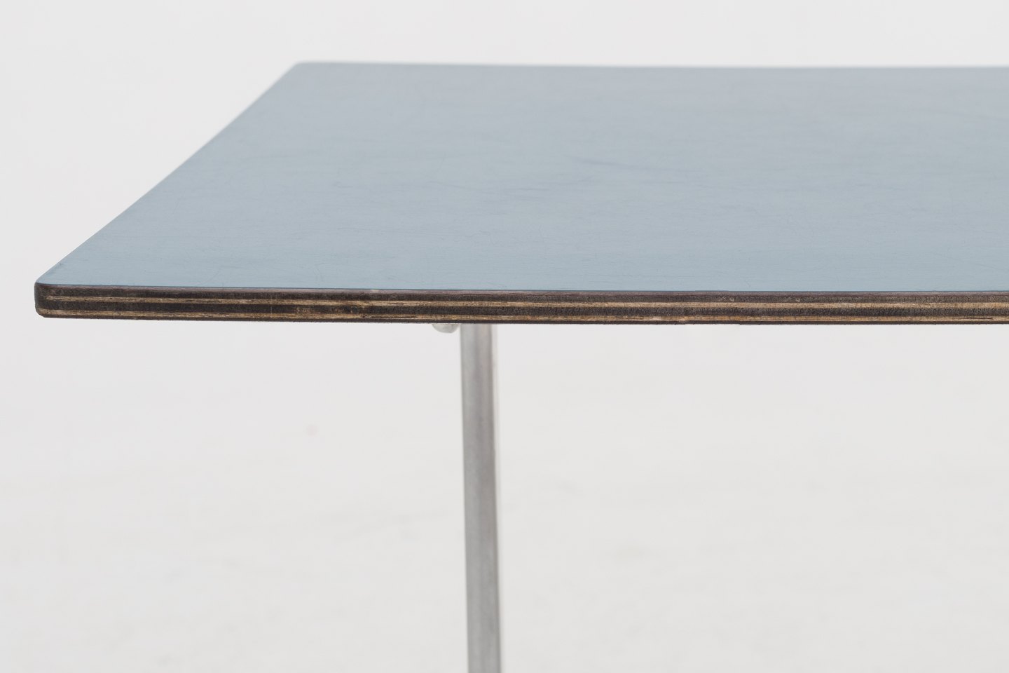 Sofabord på shaker-stel i stål og plade i blå formica. Fra SAS Hotellet og designet i 1958