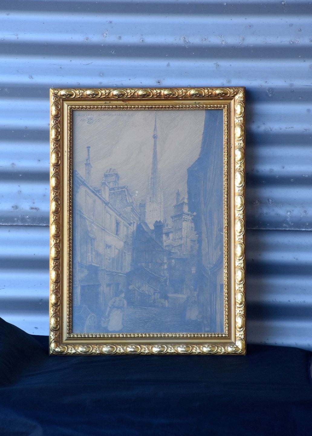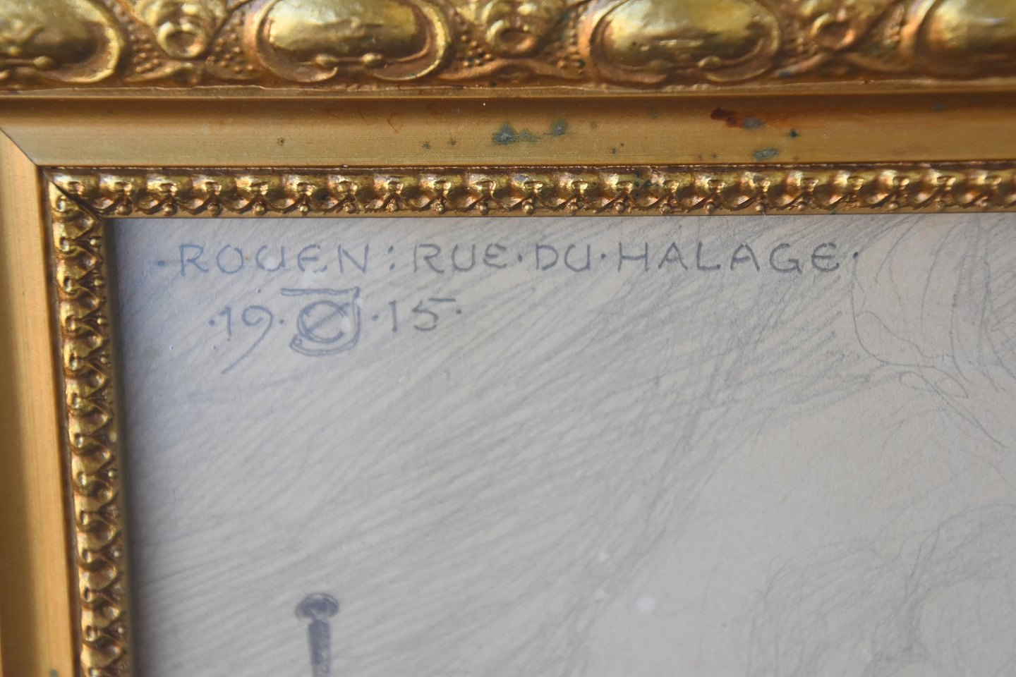 Tegning med Motiv fra Rouen, Rue Du Halage i Frankrig.