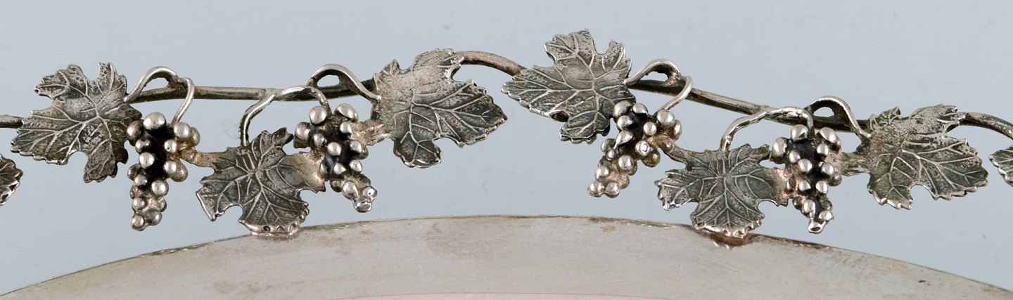 Stor sølvopsats med gennembrudt bort med vindrueranker.