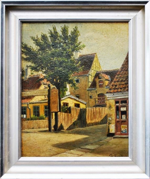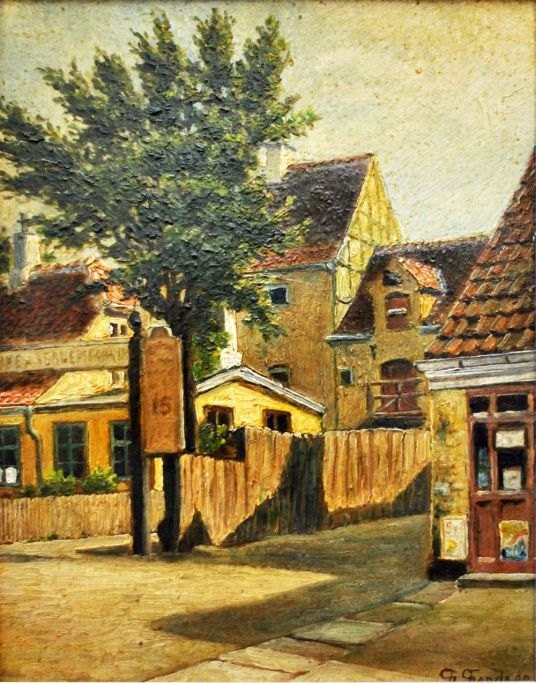 Frands Frandsen (1885-1979): Parti fra Liflandsgade. København. Olie på plade. Sign.: Fr. Frandsen. 30 x 23 cm. Signeret.