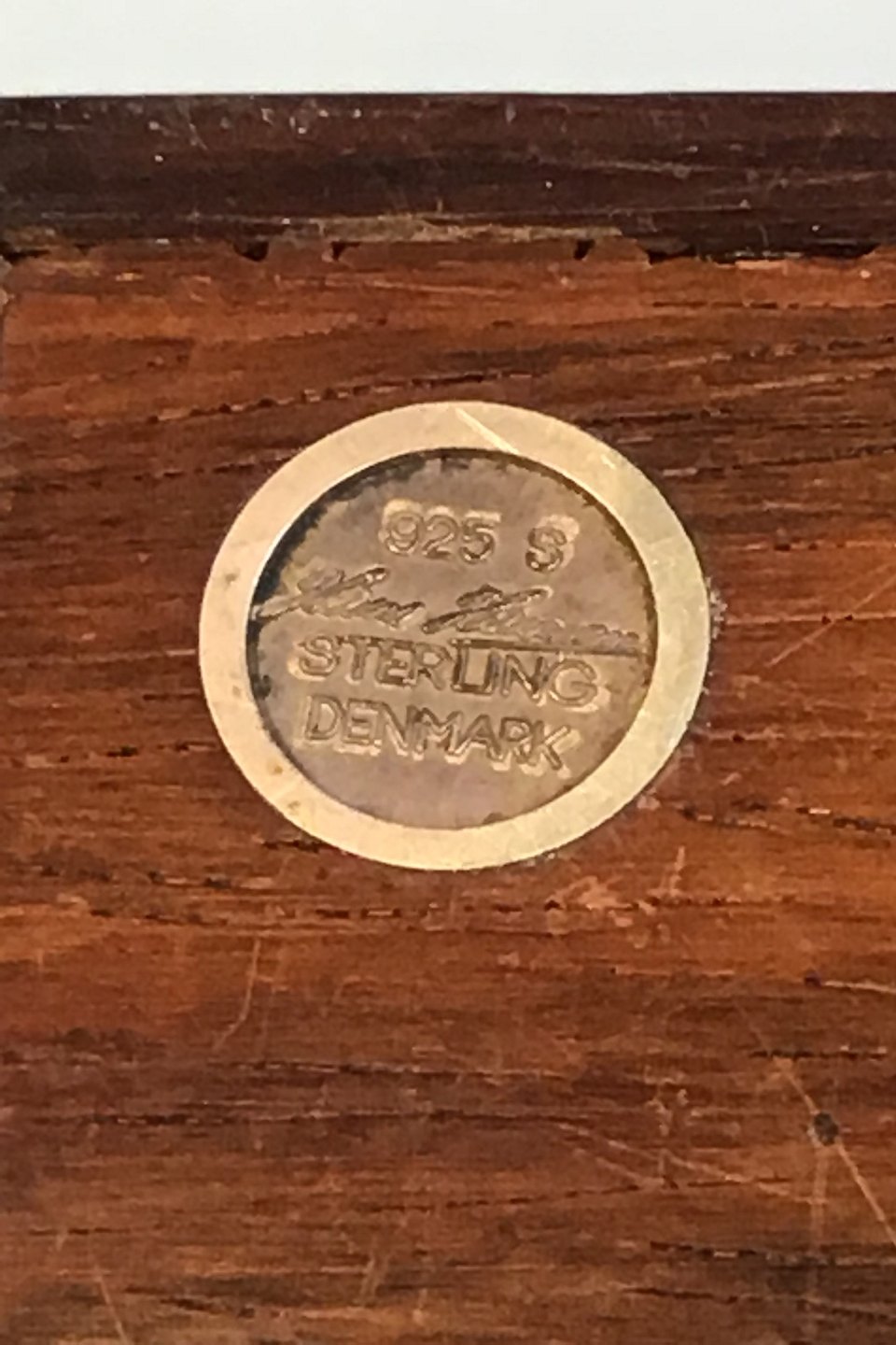 Hans Hansen Palisanderæske med sølvindlæg L 11 cm, B 8,5 cm H 4,8 cm (Minimalt afslag i låget)