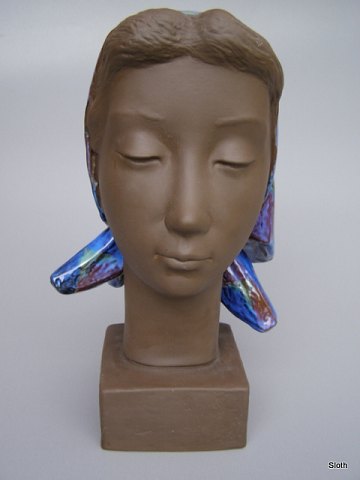 R.C. 159/2897 Kvindehoved med Tørklæde, Johannes Hedegaard H: 32 cm.