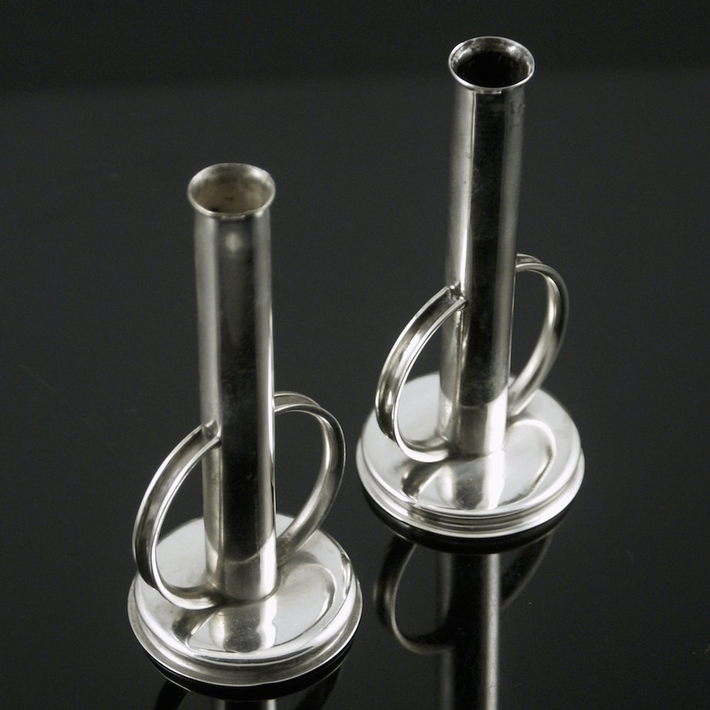 Svend Weihrauch 1899-1962 for F. Hingelberg. Par Art deco stager i sterling sølv.