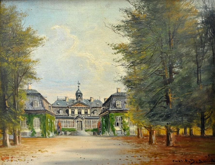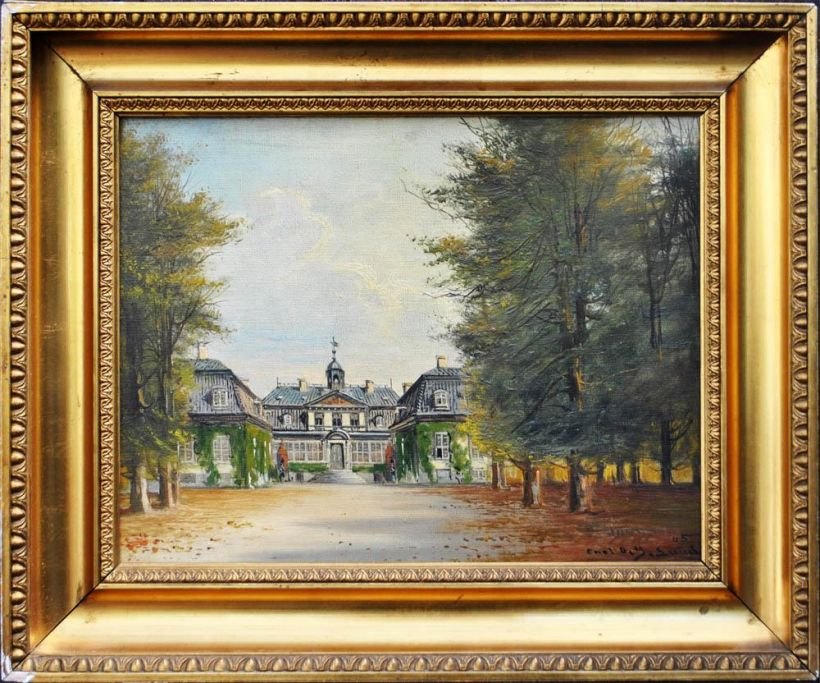 Lund, Carl O. J.  (1857 - 1936) Danmark.  Sorgenfri Slot. Olie på lærred. Sign.: Carl O. J. Lund 05. 28 x 35 cm.