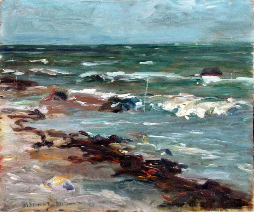 Dansk kunstner (20. årh.) Marine. Olie på plade. Signeret: A. Simonsen. 37 x 42 cm.