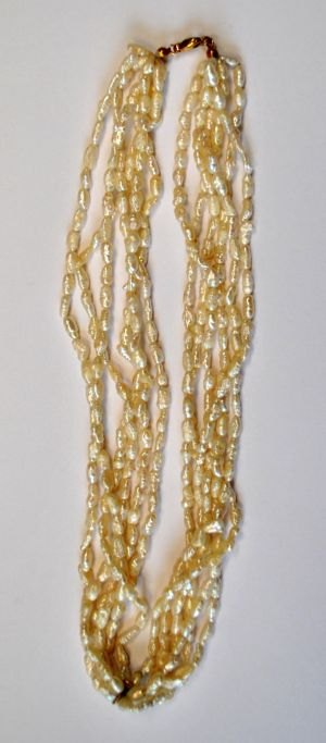 5 radet perlekæde, 20. årh. Ferskvandsperler. Med 14 k guldlås. Længde.: 38 cm.