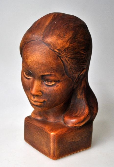 Carlsen, Poul Hauch (1921 - 2006) Danmark: En Burma pige. Stentøj. Brunglaseret. H.: 21 cm. Signeret.