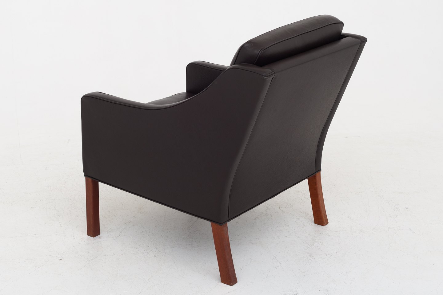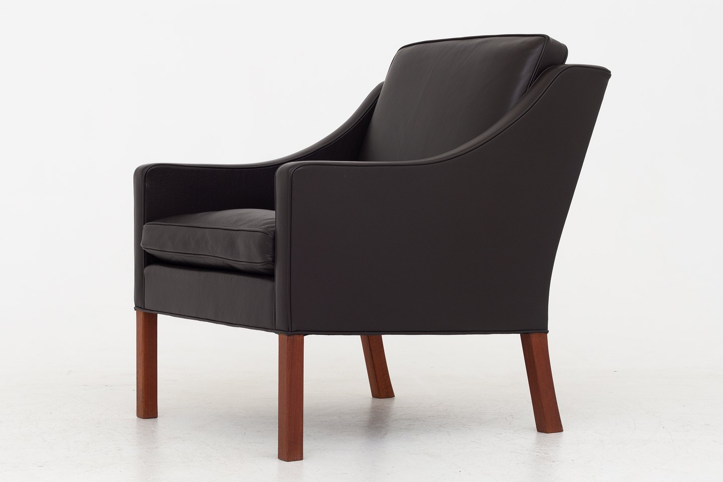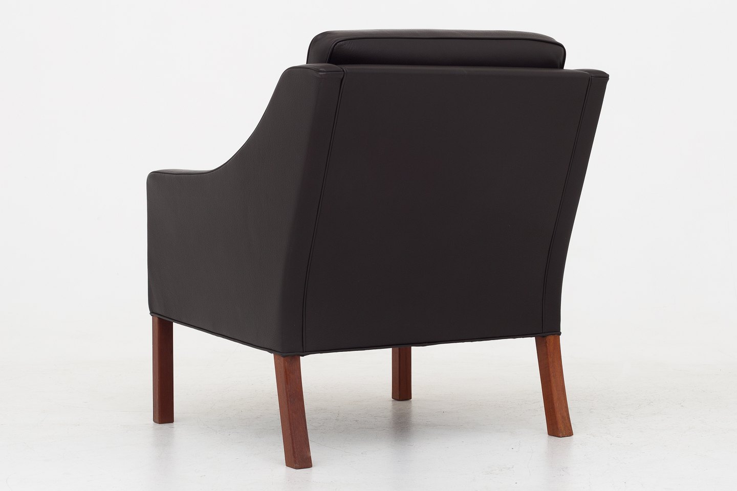 BM 2207 - Reupholstered easy chair in Paris Brown leather and legs of teak. We can offer upholstery of the chair in fabric or leather of your choice. Please contact us for further information.