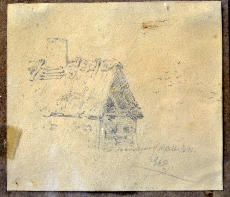 Libert, Georg Emil (1820 - 1908): Farm scene. Lead on paper. Signed: Monogram October 10, 1841. 10.5 x 14 cm.