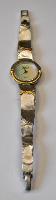 Zola quartz lady wrist watch with sterling silver box and link, 20th century.