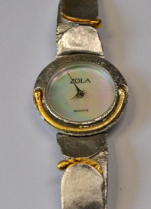 Zola quartz lady wrist watch with sterling silver box and chain, 20th century. Gold plated. Length: 18 cm. 1 extra lead included. Stamped: Sterling.