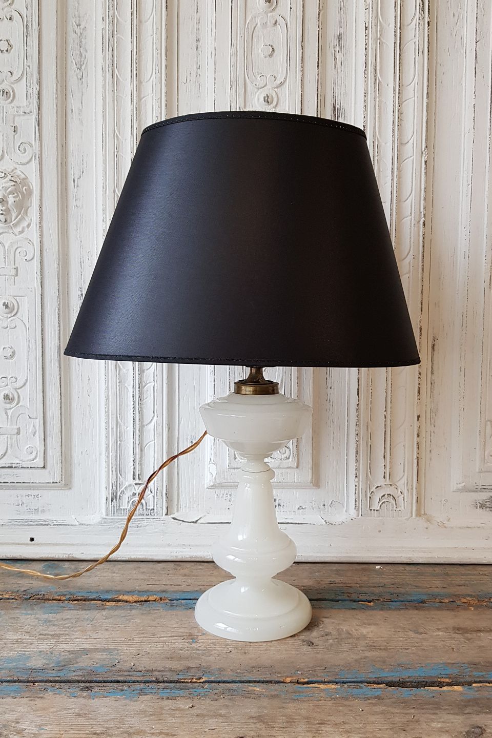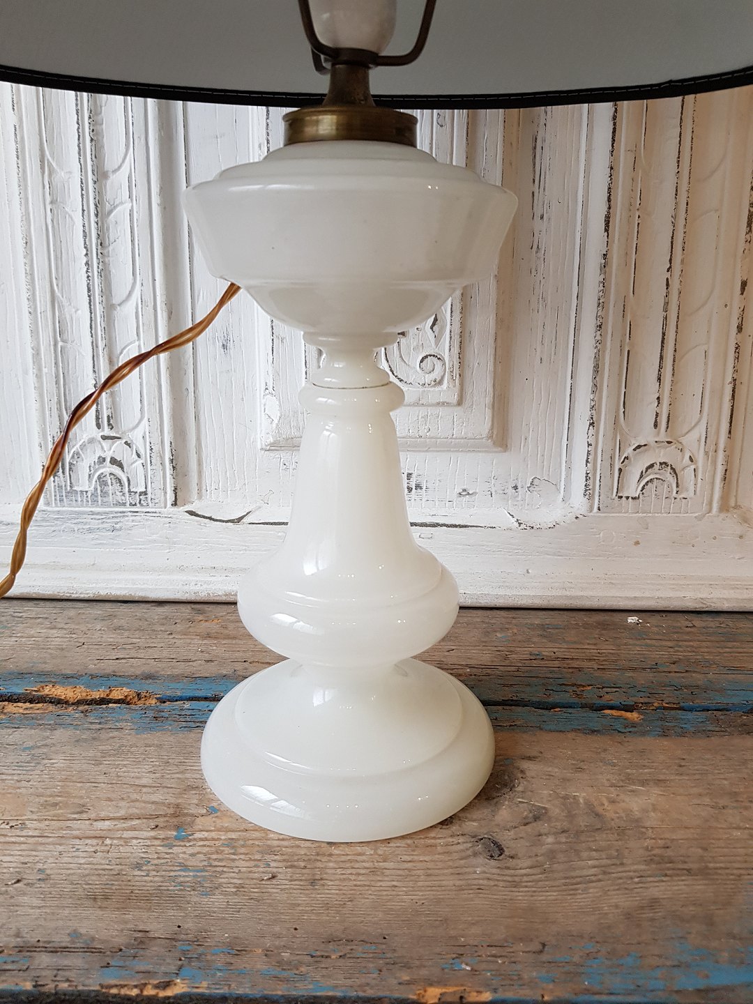 Hvid opaline olielampe omlavet til el.