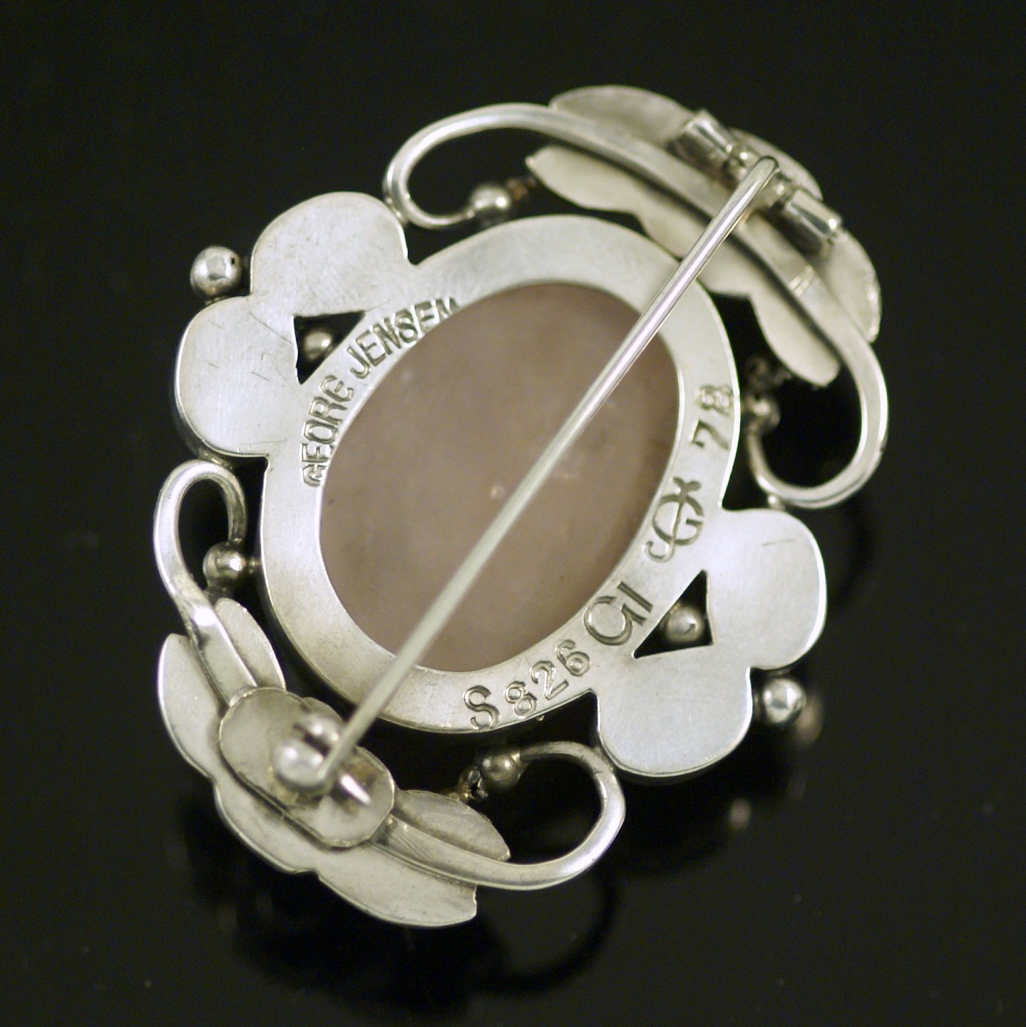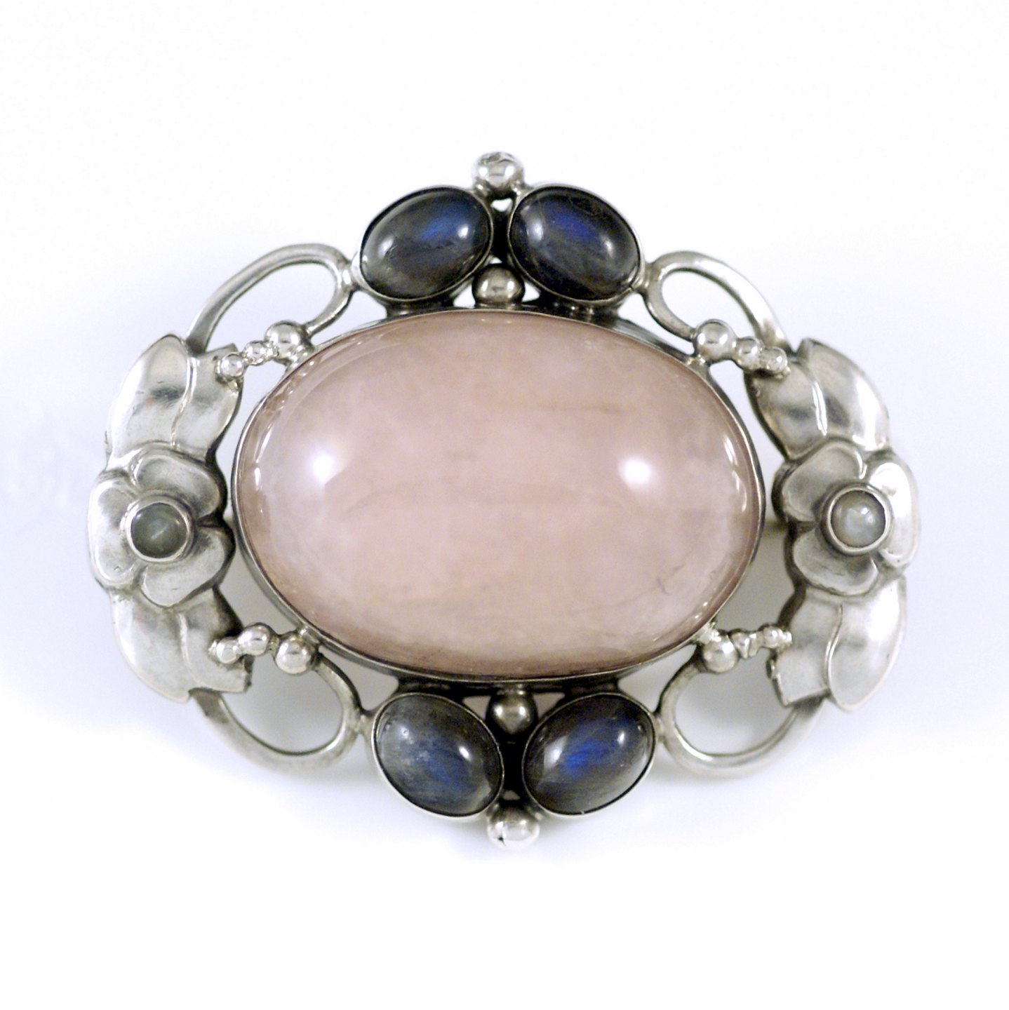Georg Jensen Broche i 826S Sølv #78 med Rosa Kvarts, Labradorit og Perler - 1904-1908 stempler.