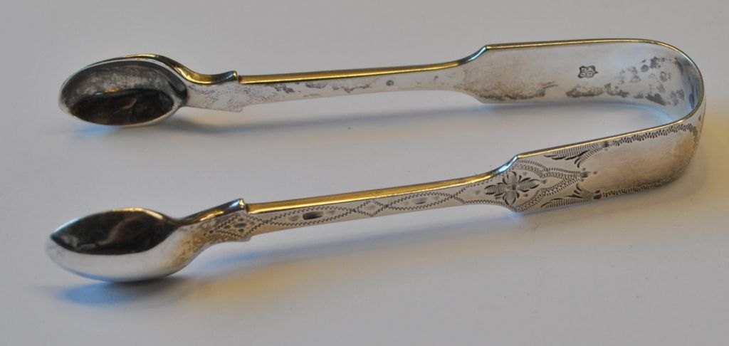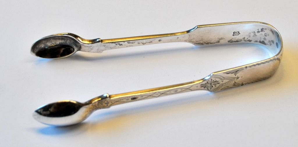 Engelsk sukker tang, 19. årh. Stemplet. Med dekorationer. Længde.: 11 cm.