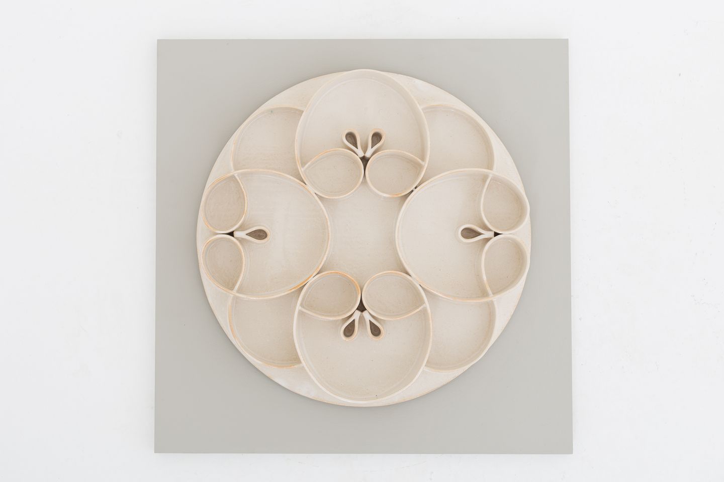 Vægrelief i stentøj monteret på træplade.