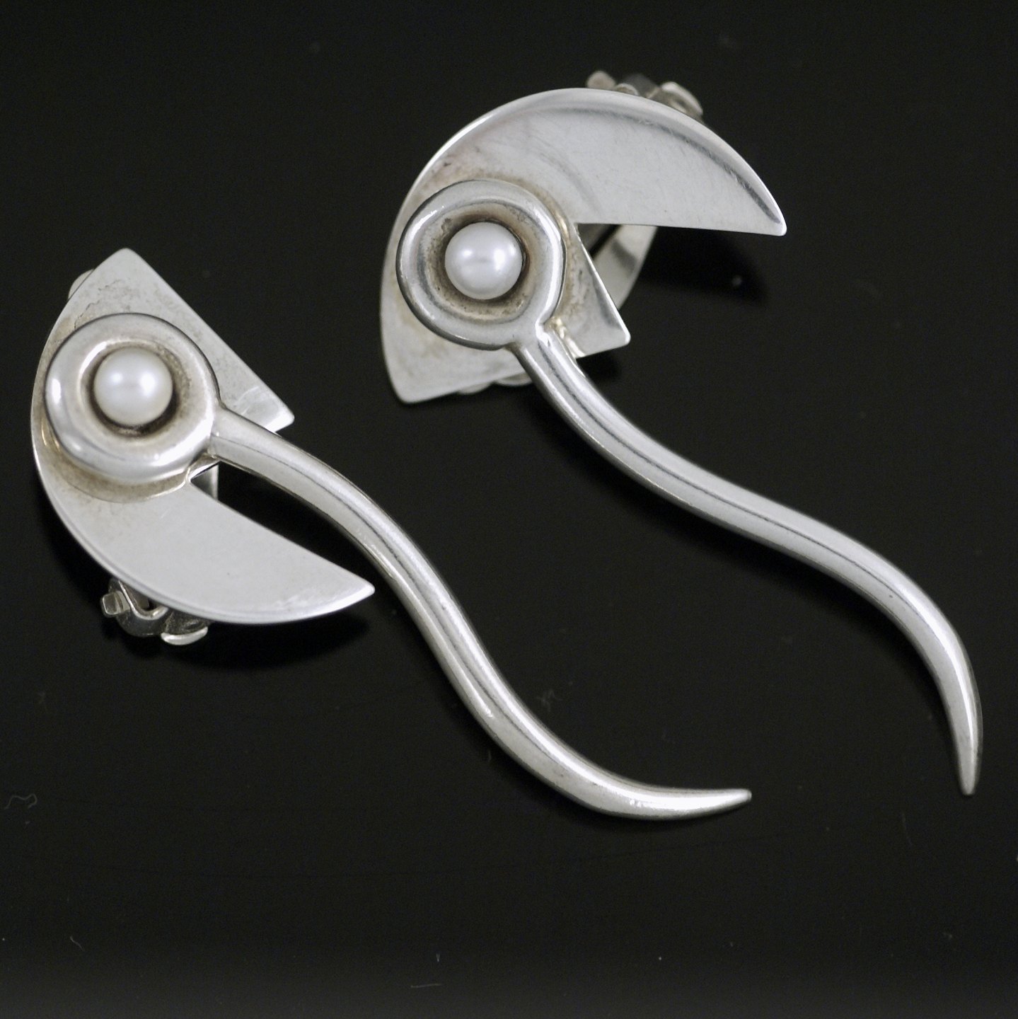 Wilhelm Freddie. Øreklips i sterling sølv med perler. Årets kunstnersmykke 1991