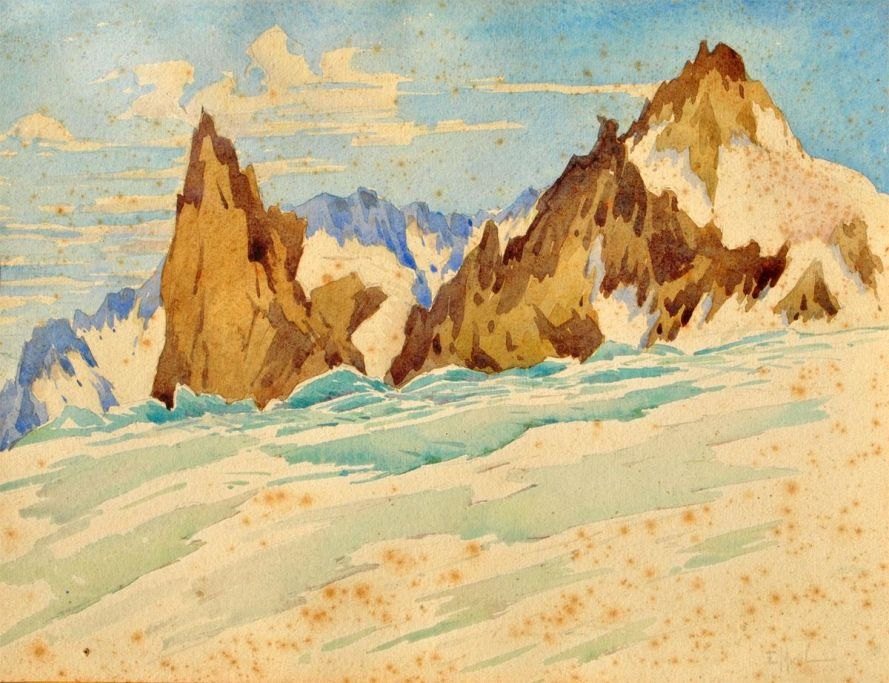 Le Moul, Eugene Louis (1859 - 1934) Frankrig: Bjergtinder. Akvarel.