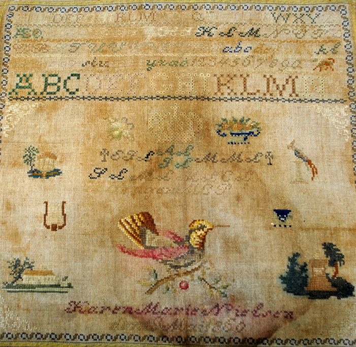 Navneklud, Karen Marie Nielsen, marts 1850. Danmark. 38 x 40 cm. Uindrammet.