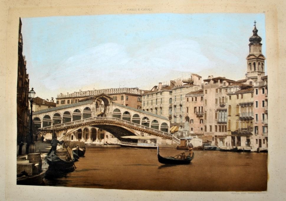 Fotografi, Rialto broen, Venedig, 19. årh. Calli E Canali. Ferdinand Ongania. 25 x 36 cm.