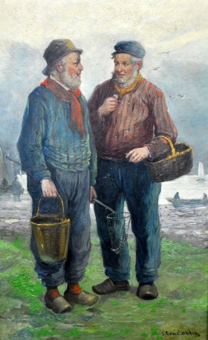 Constantin, J (19./20. årh.): To fiskere i samtale, Holland.