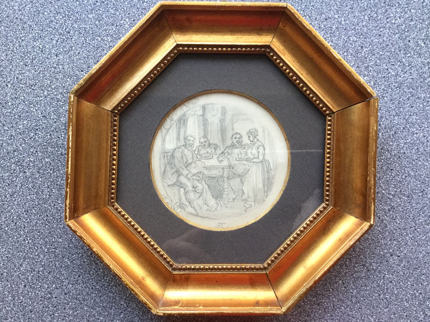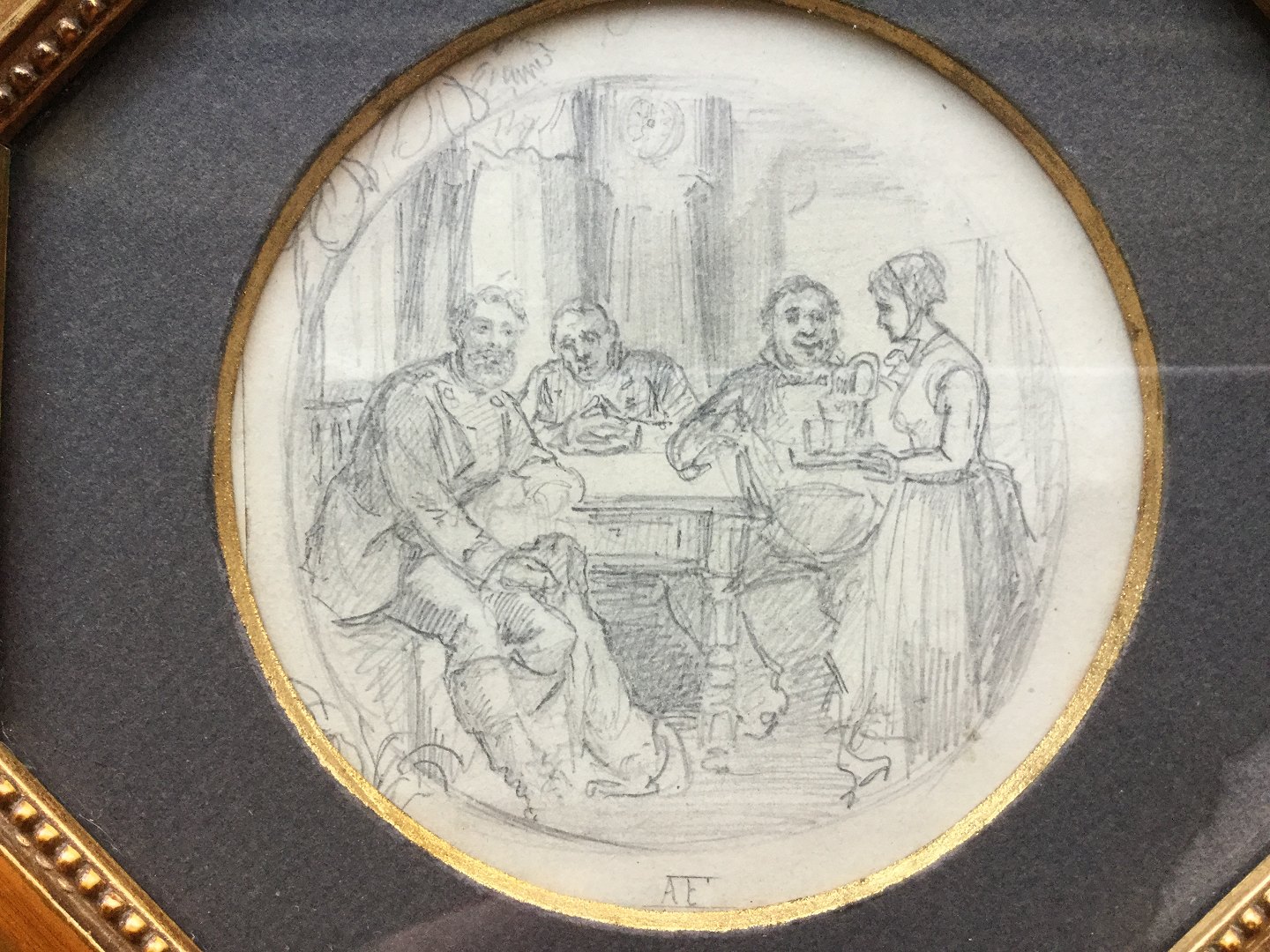 Indrammet i ottekantet guldramme.