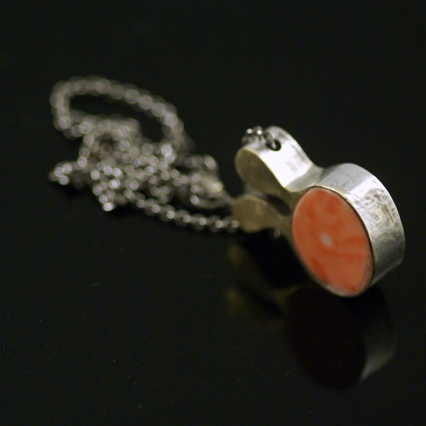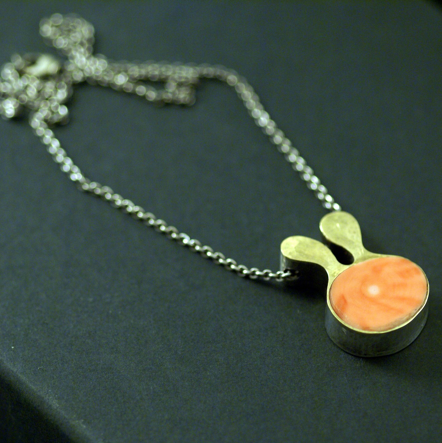 Ole Waldemar Jacobsen. Vedhæng i sterling sølv med 18k guld koral.
