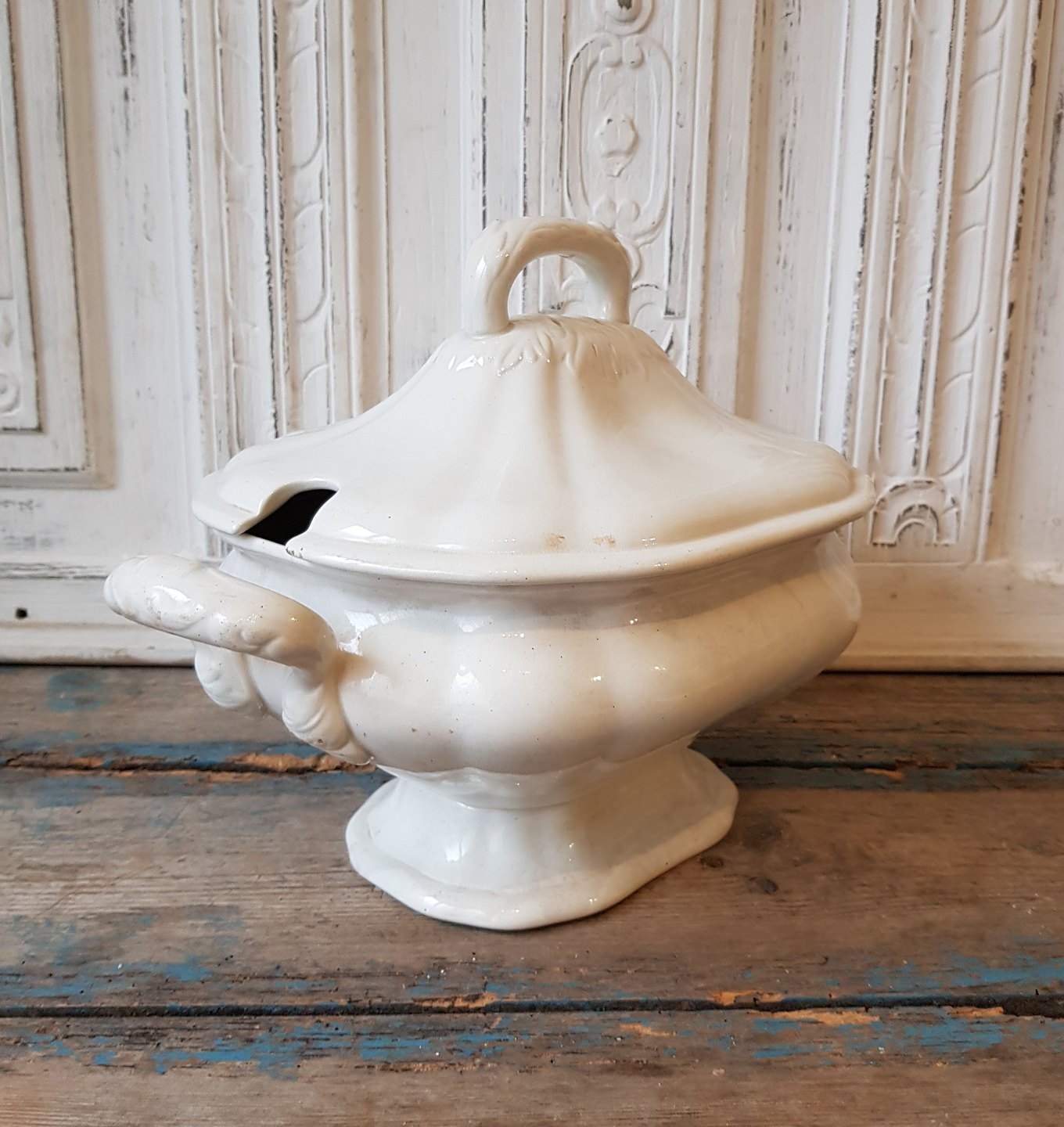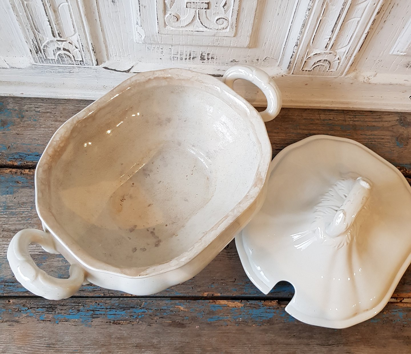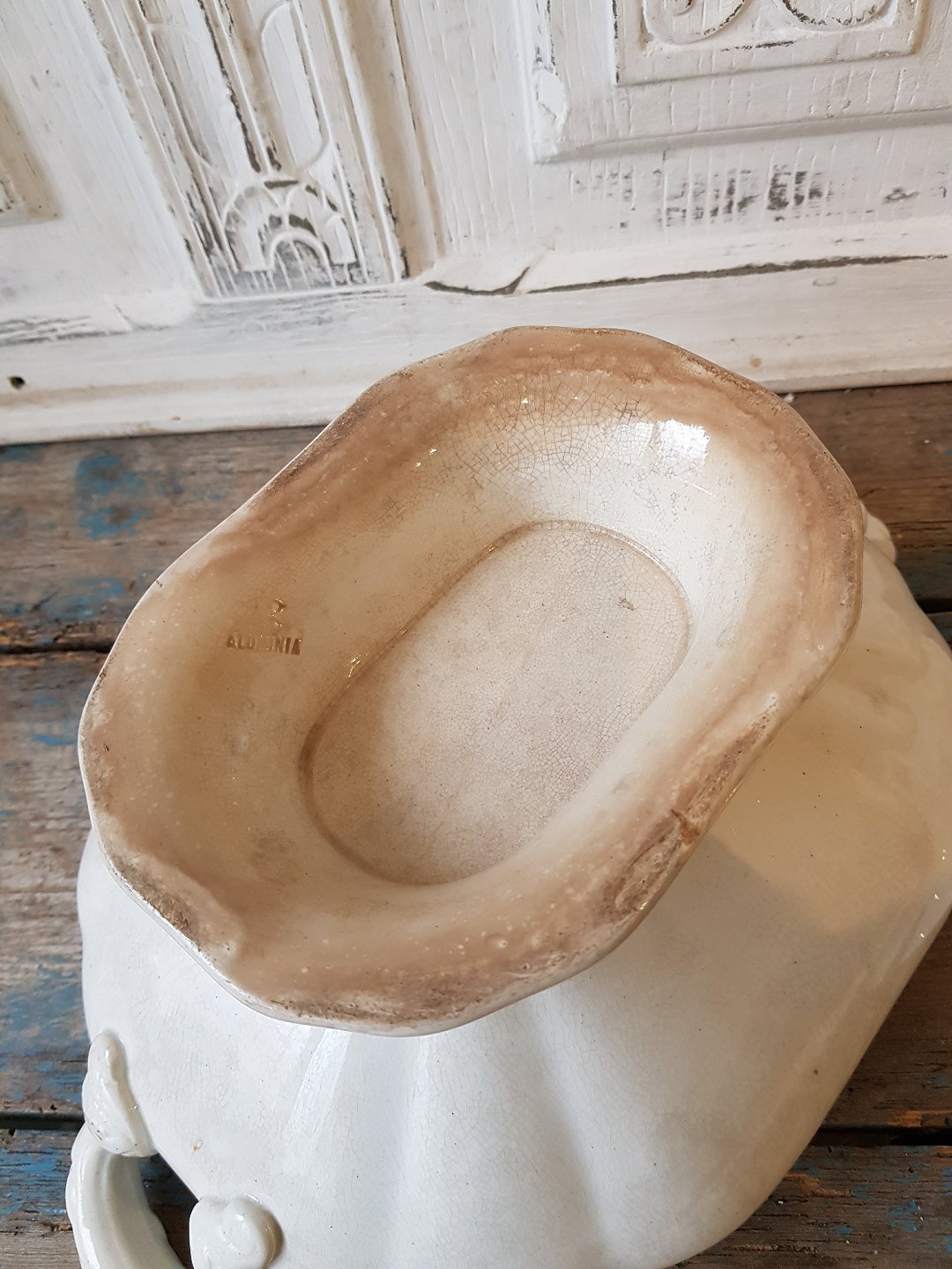 Meget smuk cremefarvet Pariser terrin fra Aluminia.