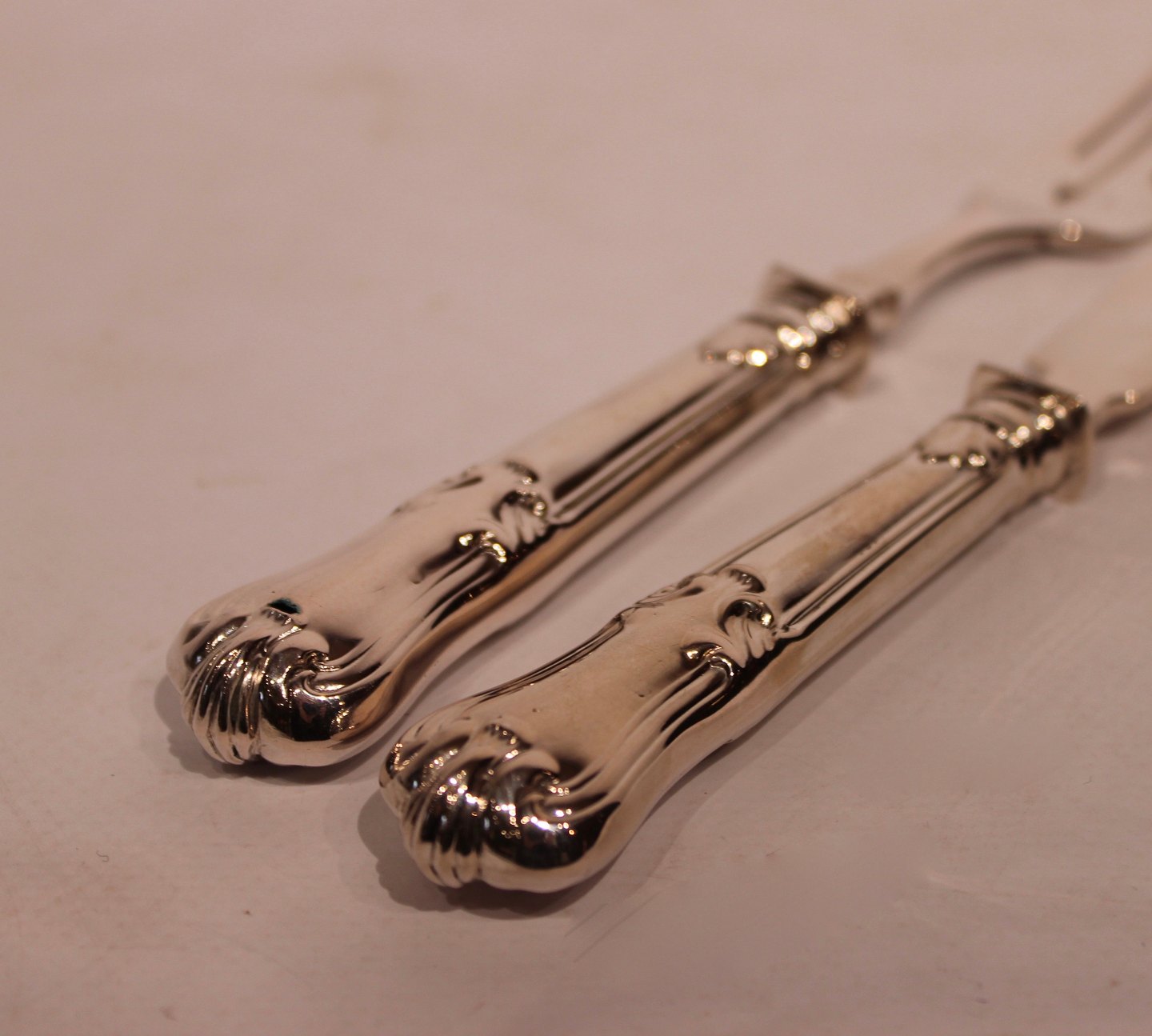 Fiskebestik i andet mønster af tretårnet sølv.