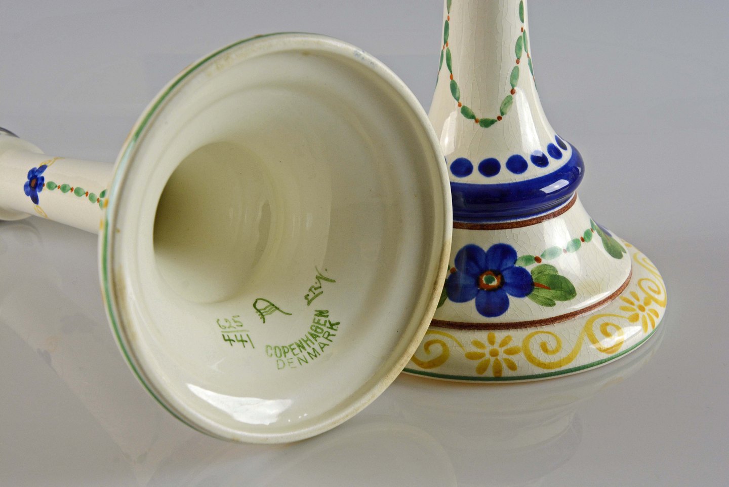 Et sæt fajance lysestager fra Aluminia nr. 625/441