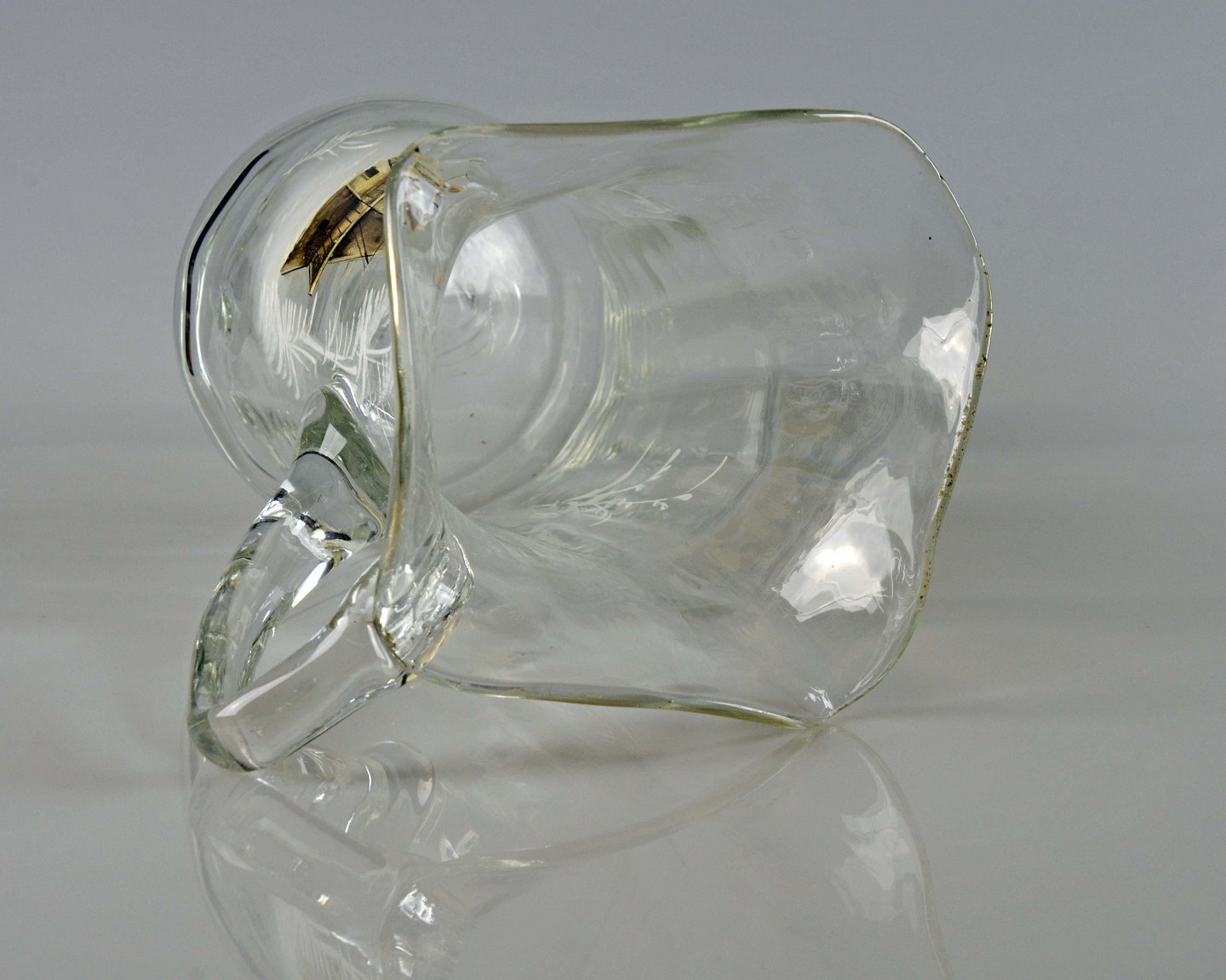 Intakt med ujævnheder i glasset i topkanten af kanden.