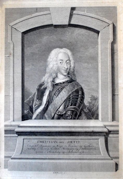 Preisler, Johan Martin (1715 - 1794): Portæt af kong Christian den VI. Kobberstik.