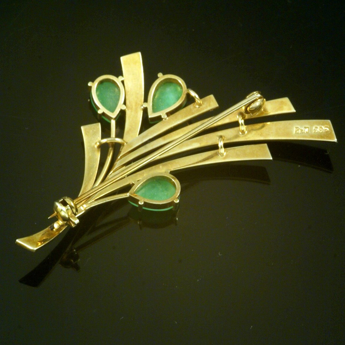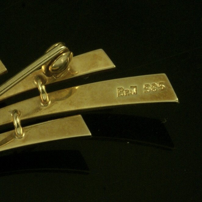 Bræmer-Jensen. Broche i 14k guld med jade. 1960erne