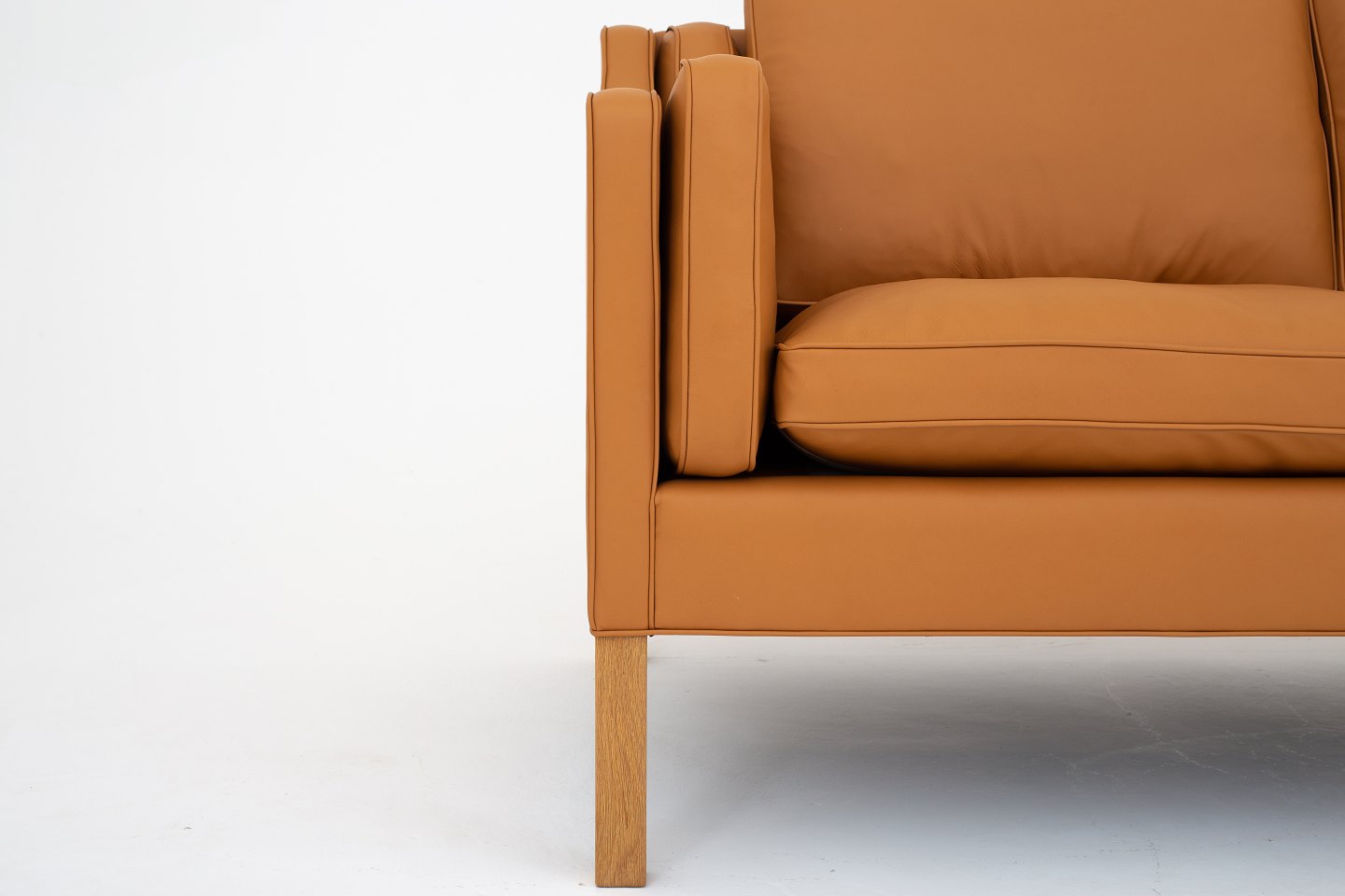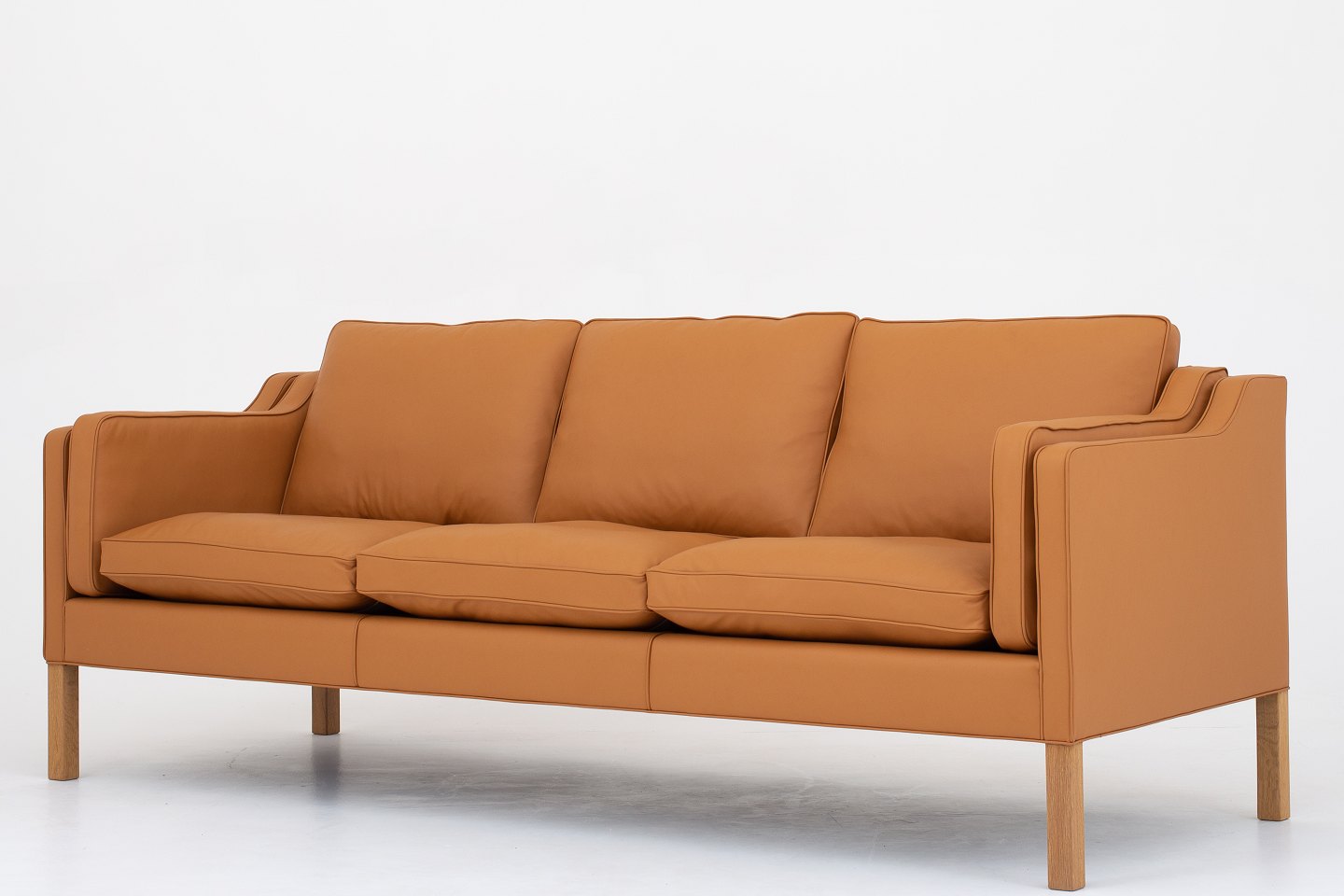 BM 2213 - Nybetrukket 3 pers. sofa i Savanne Beige-læder og ben i eg. KLASSIK tilbyder polstring af sofaen med stof eller læder efter eget ønske. Kontakt os venligst for mere information.