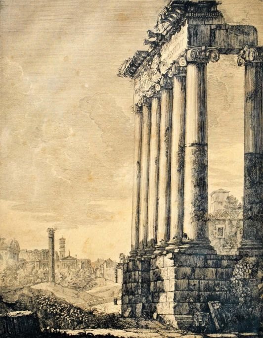 Rossini, Luigi (1790 - 1857) Italien. Ruin af Concordia templet. Signeret 1819.