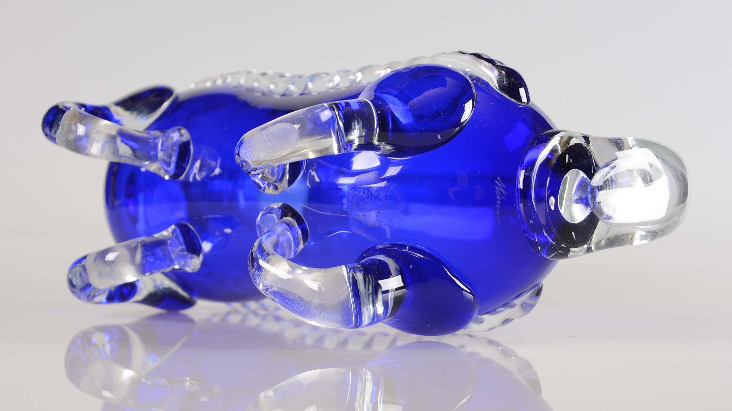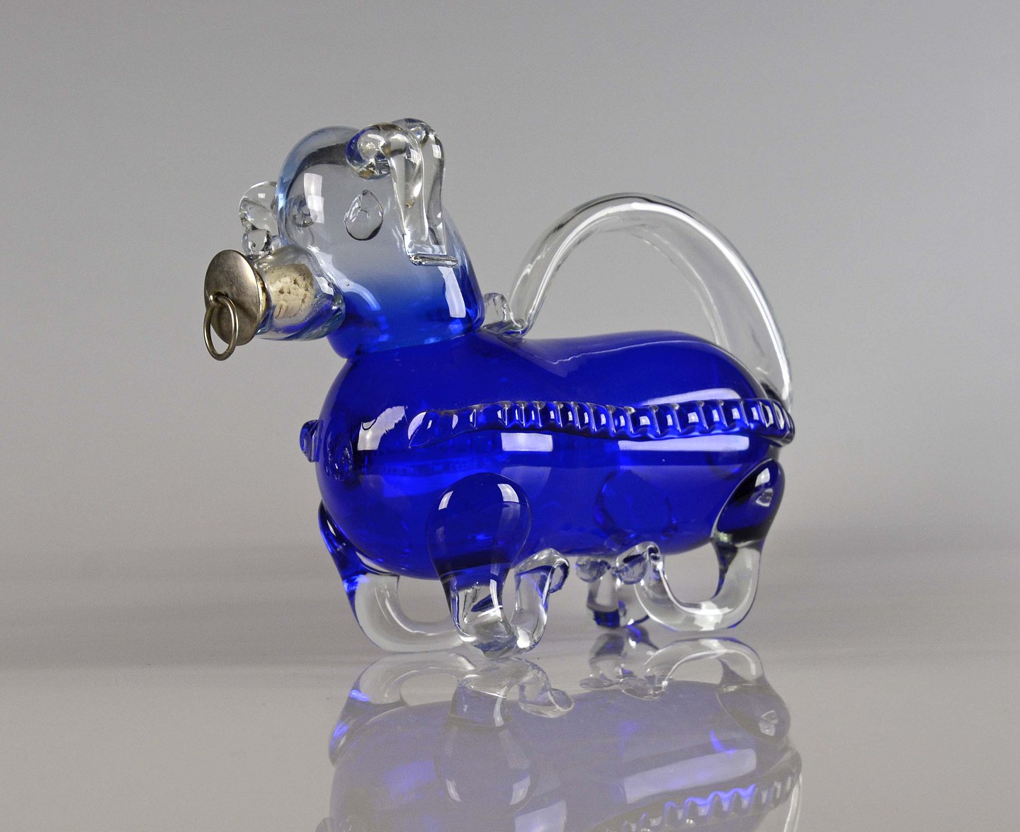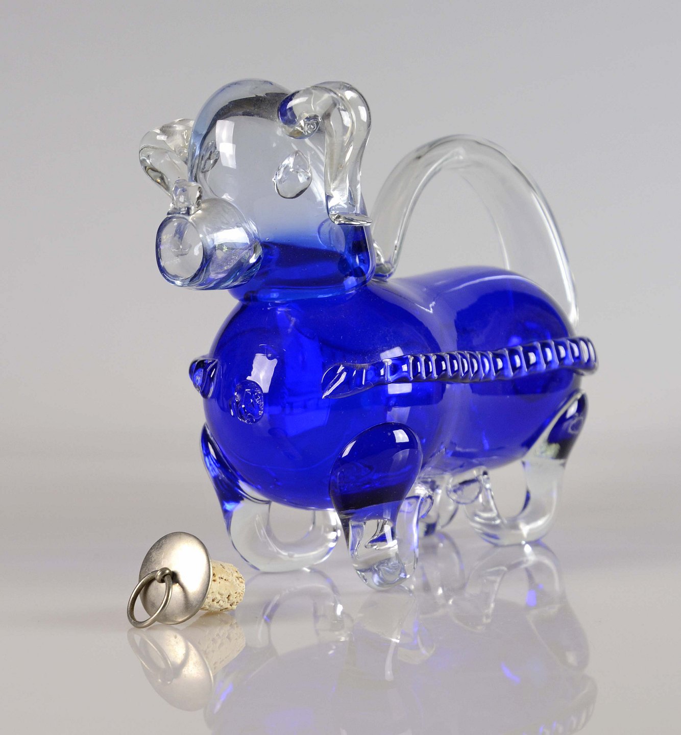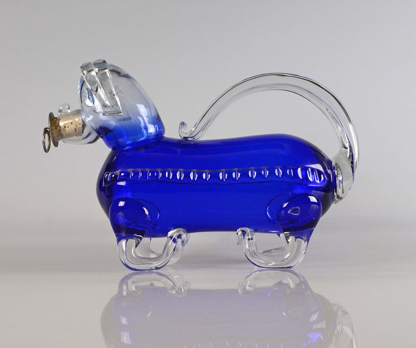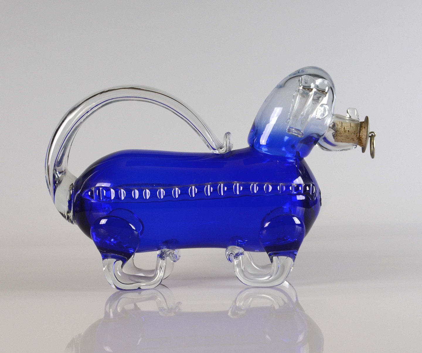 Snapsehund i glas med korkprop formentlig fra Holmegaard