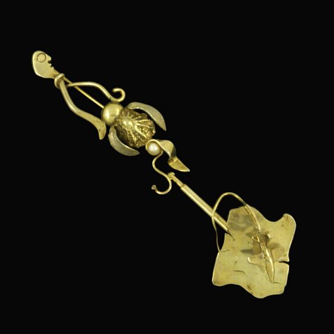 Text zugänglich auf Dänische: Blicher Fuglesang. Broche i forgyldt Sterling Sølv med Perle.