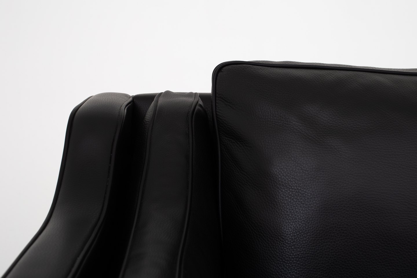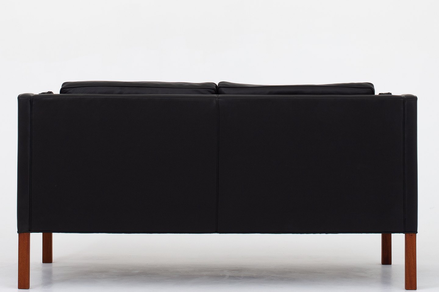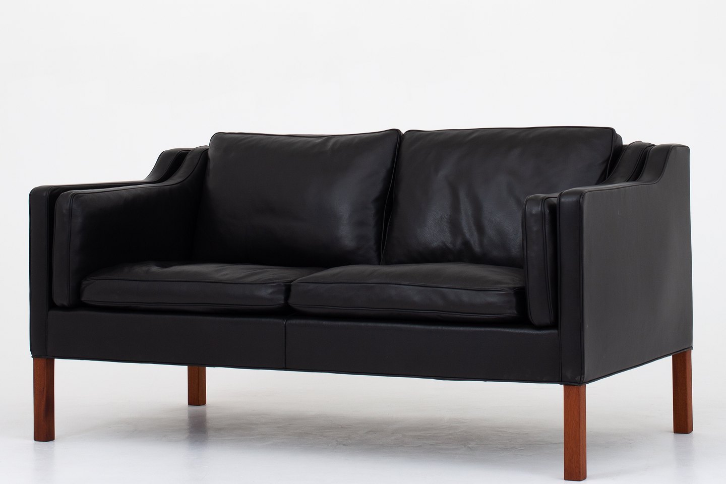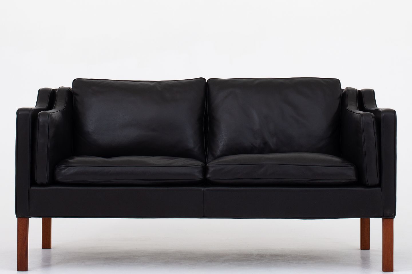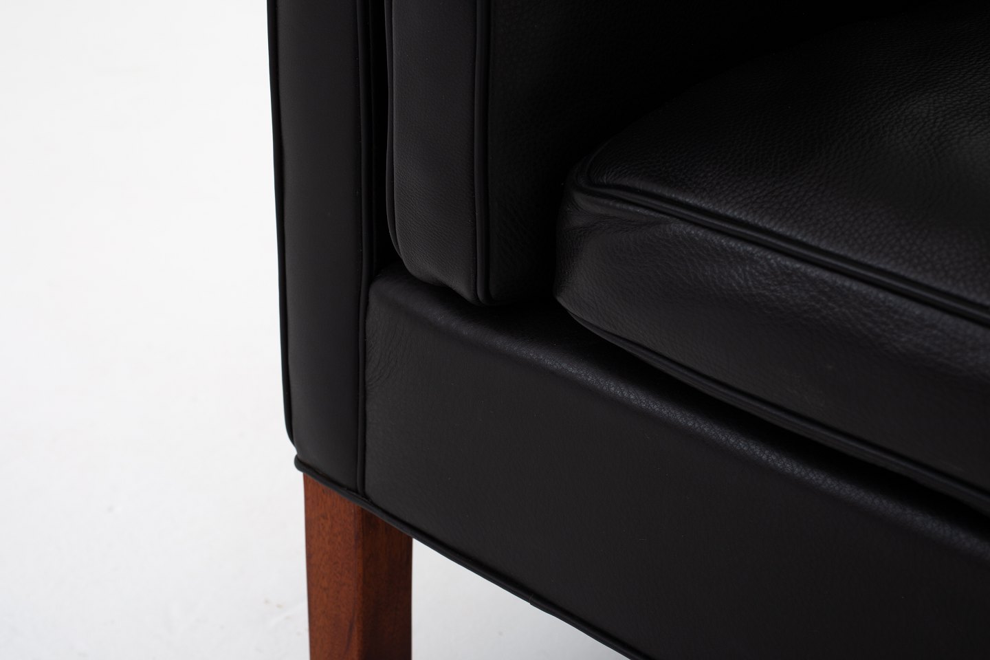 BM 2212 - Nybetrukket 2 pers. sofa i sort Klassik-læder med ben i mahogni. KLASSIK tilbyder polstring af sofaen med stof eller læder efter eget ønske. Kontakt os venligst for mere information.