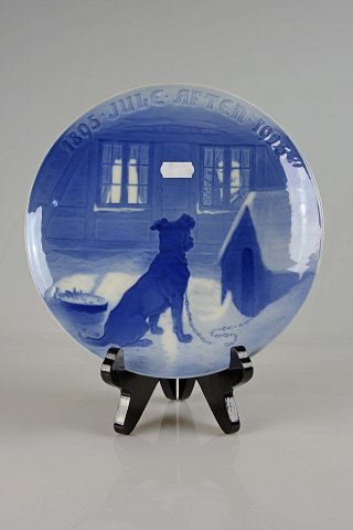 Juleplatte med motiv af lænkehund fra Bing og Grøndahl