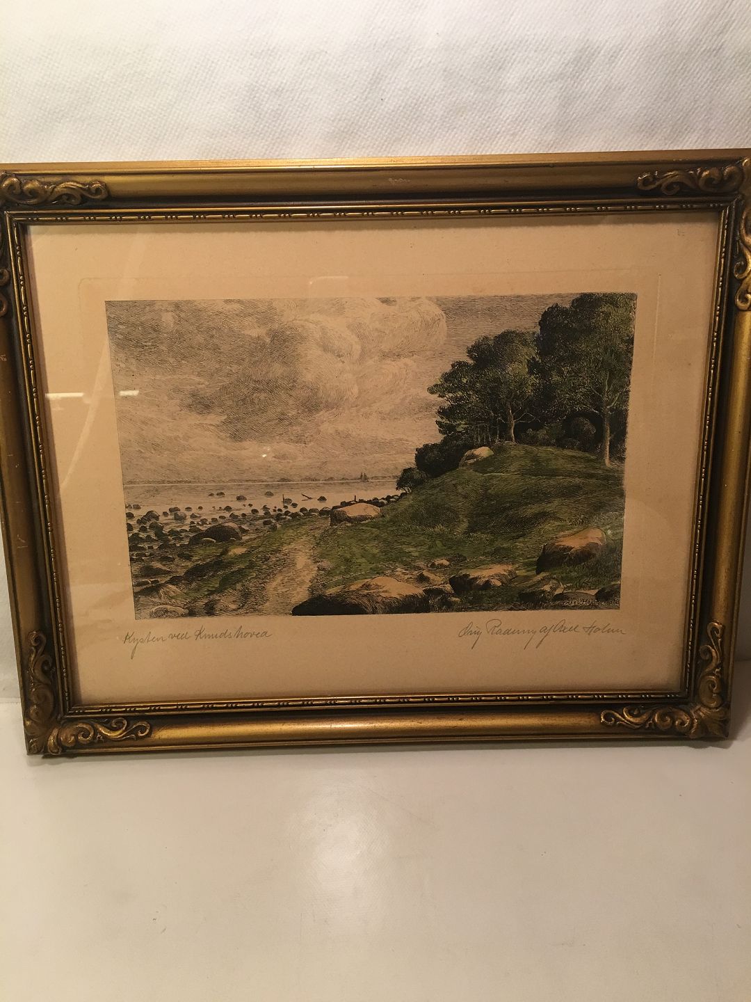 Højde med ramme: 30 cm Bredde: 38 cm.