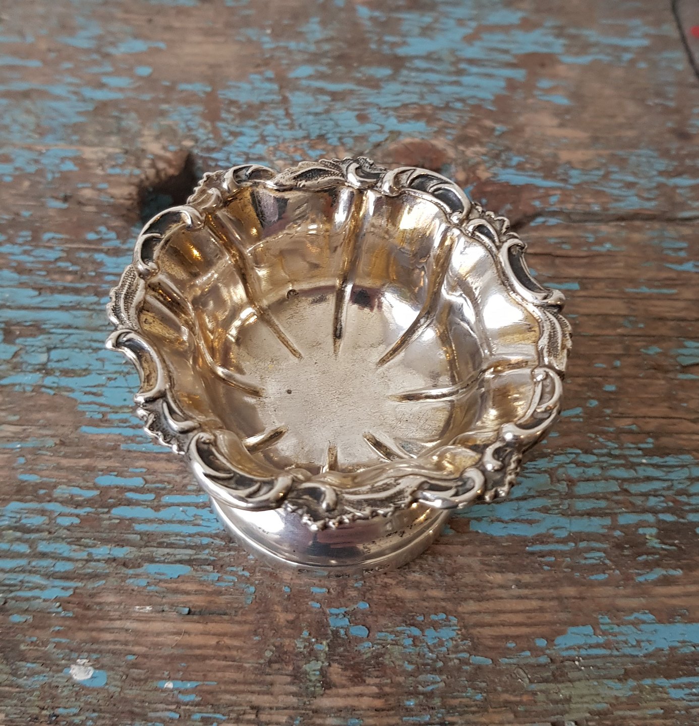 Russisk sølv saltkar fra St. Petersborg 1818-1864. Kummen er forgyldt.