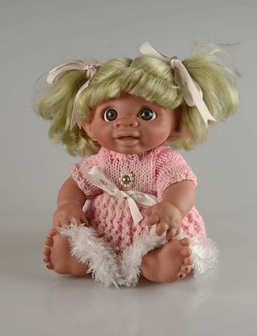 Dukken har bevægelige ben og er intakt.