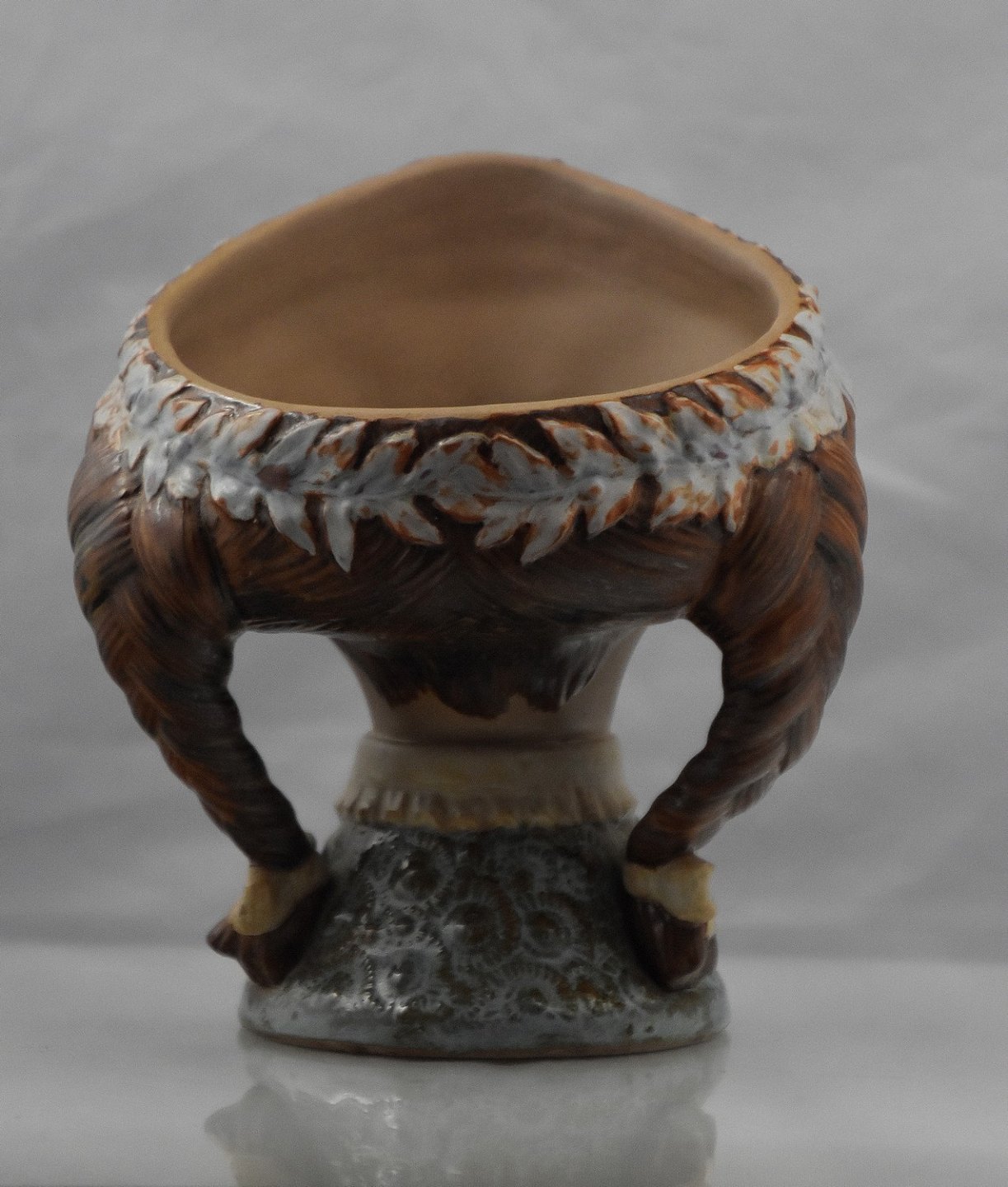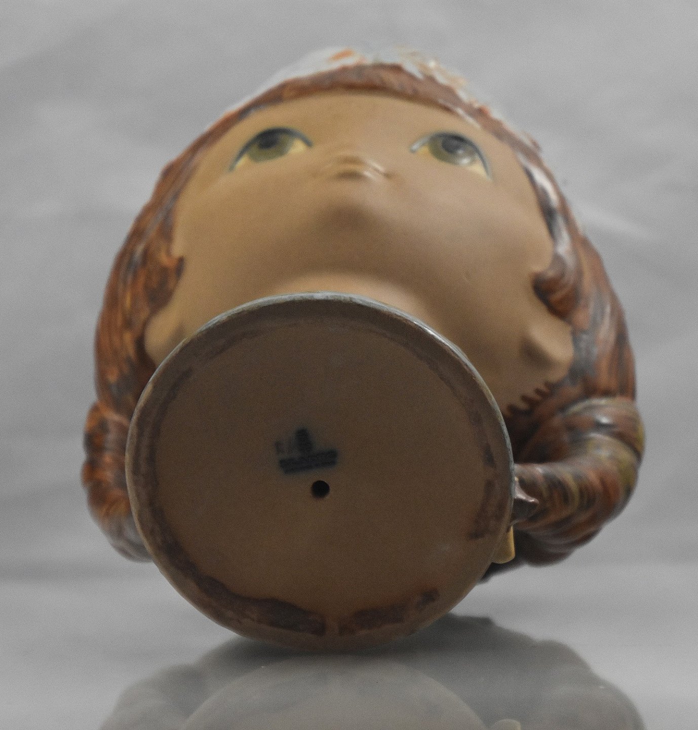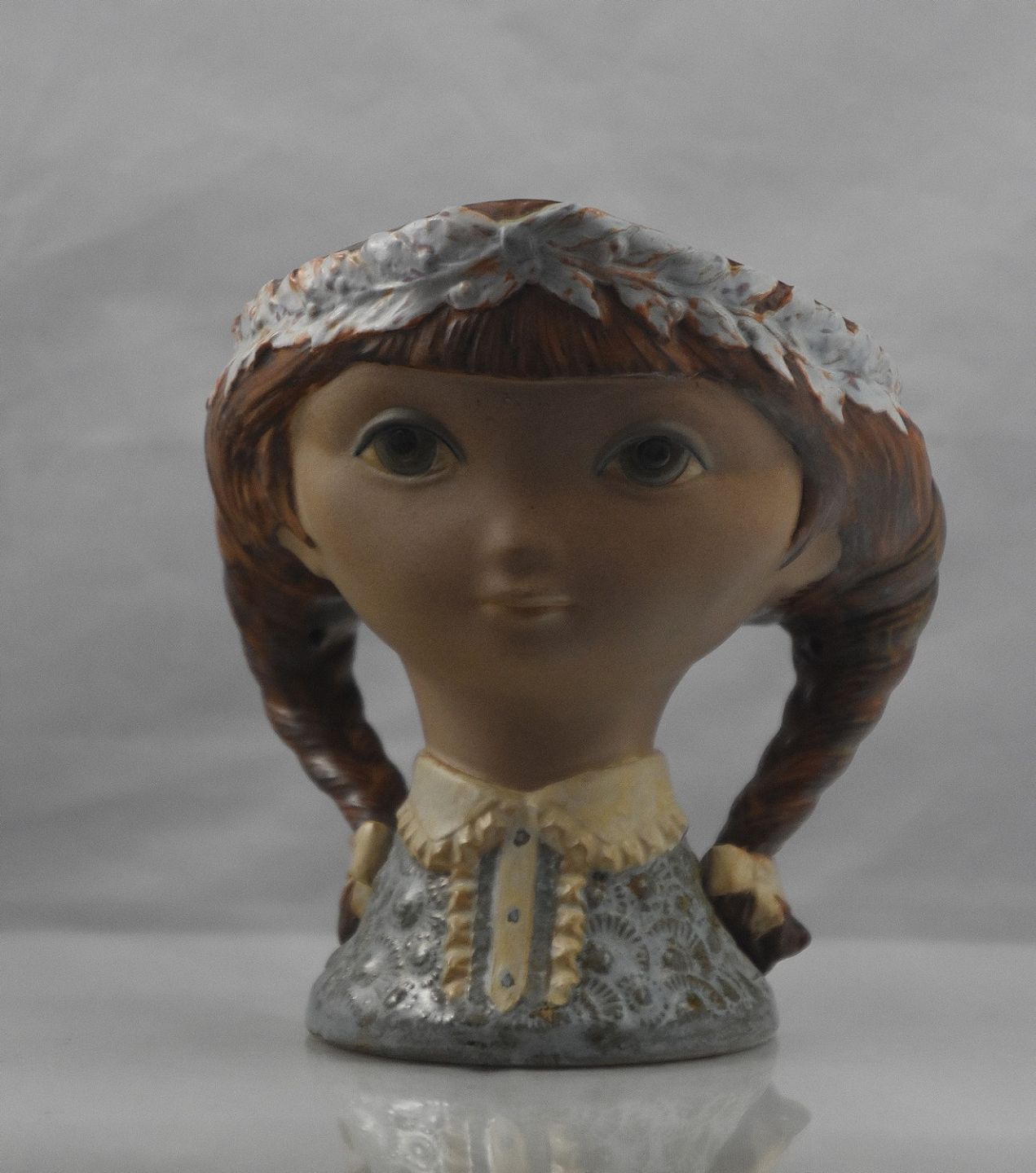 Figur i keramik med motiv af pige med fletninger og blomsterkrans